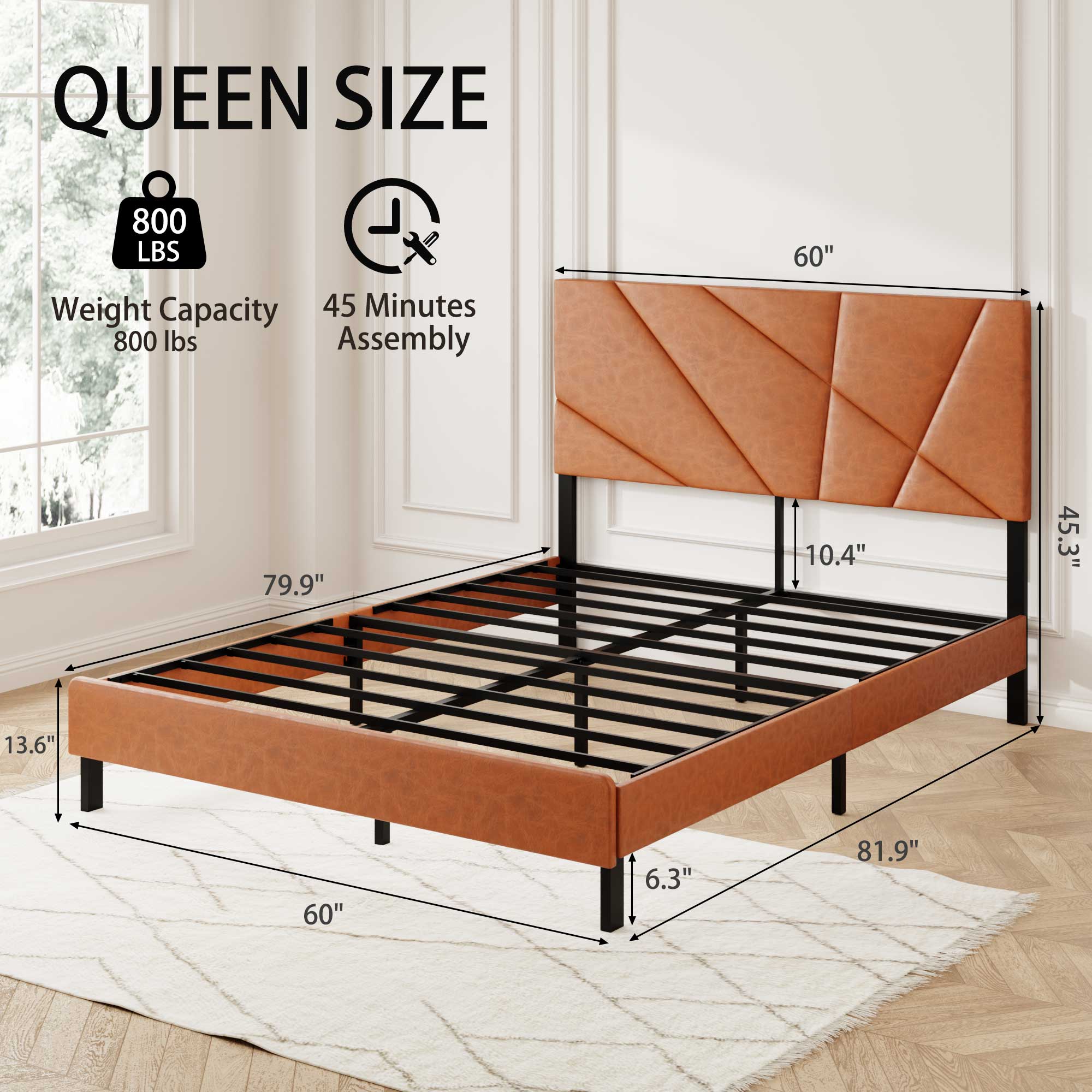 - Sturdy Structure & No Box Spring Required: Queen size platform bed frame features a combination of an ultra-durable metal frame, ensuring even support and superior weight distribution. With a weight capacity of 800 lbs, it offers a strong sense of security and promotes restful sleep without the need for a box spring