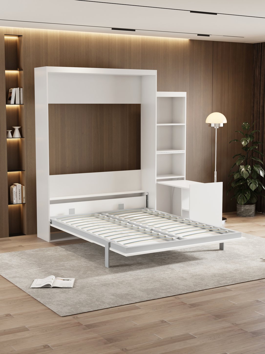 Transform your bedroom or guestroom into a stylish, space-saving sanctuary with this modern queen-size vertical Murphy bed. Designed for effortless daily use and built to last, it combines clean contemporary lines with practical features—integrated shelves and a fold-down table create a multifunctional hub for sleeping, working, or welcoming guests without sacrificing floor space. The bed uses a patented pneumatic gas-strut system for smooth, controlled motion and robust support so you can fold and unfold with confidence.