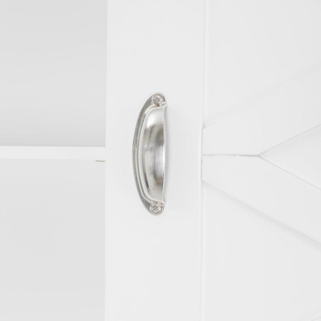 - Material & Finish: Constructed from pinewood and MDF with a white finish and diamond stripe accents for a refined look