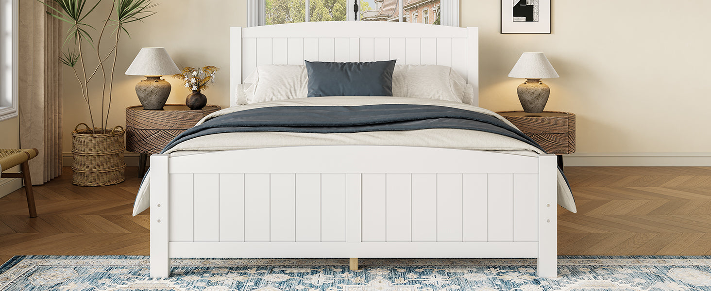 - Modern, Space-Enhancing Design--With its clean lines and versatile white finish, this platform bed complements any bedroom decor from rustic to contemporary. The minimalist design makes the room feel more open and organized, helping you maximize space, especially in smaller rooms or apartments.