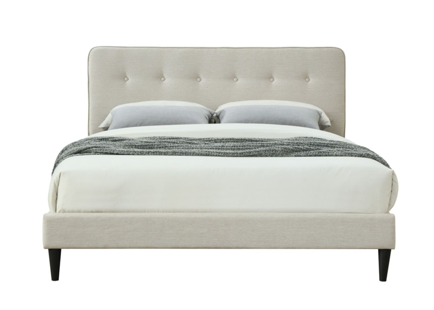 Experience modern comfort and convenience with this queen-sized upholstered bed that combines stylish design with practical features. The off-white polyester upholstery and tufted headboard create a clean, contemporary look, while the integrated USB charging keeps devices powered and within reach — perfect for today's bedrooms.