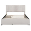 Give your bedroom an elegant, space-saving upgrade with this upholstered platform bed—designed for comfort, durability, and efficient storage. Its classic padded headboard and neutral linen upholstery create a refined focal point, while built-in drawers and a full-size trundle provide versatile organization and guest sleeping space. Solid construction and a sturdy slat system support everyday use without needing a box spring.