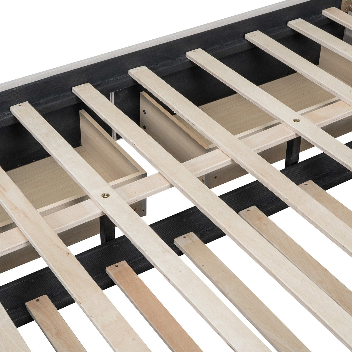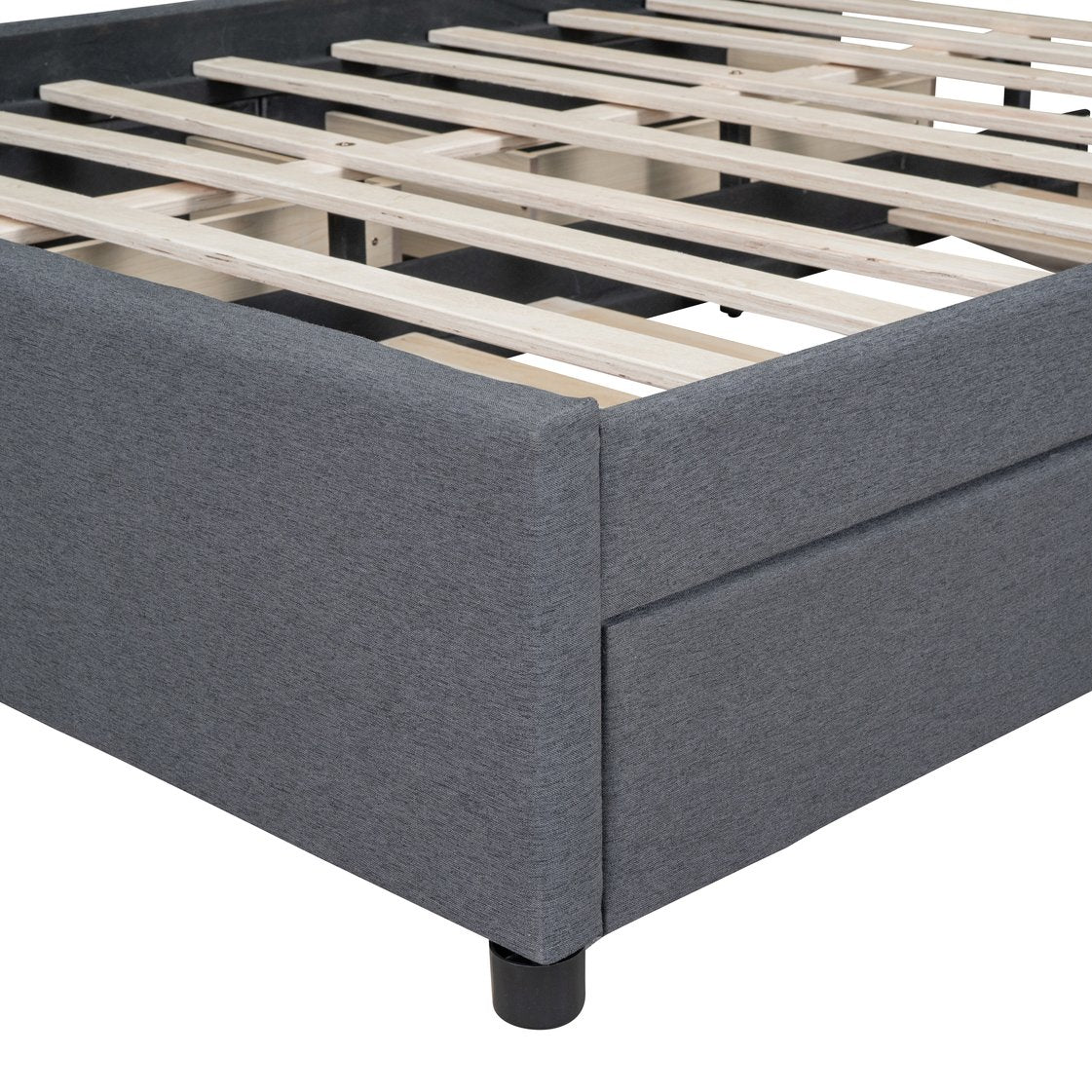 - [Maximized Space] The upholstered platform bed with two drawers and a large trundle can easily be pulled in and out for maximum storage space and extra sleeping area, perfect for organizing anything from clothes and bed linens to toys and games, and for sleepover.