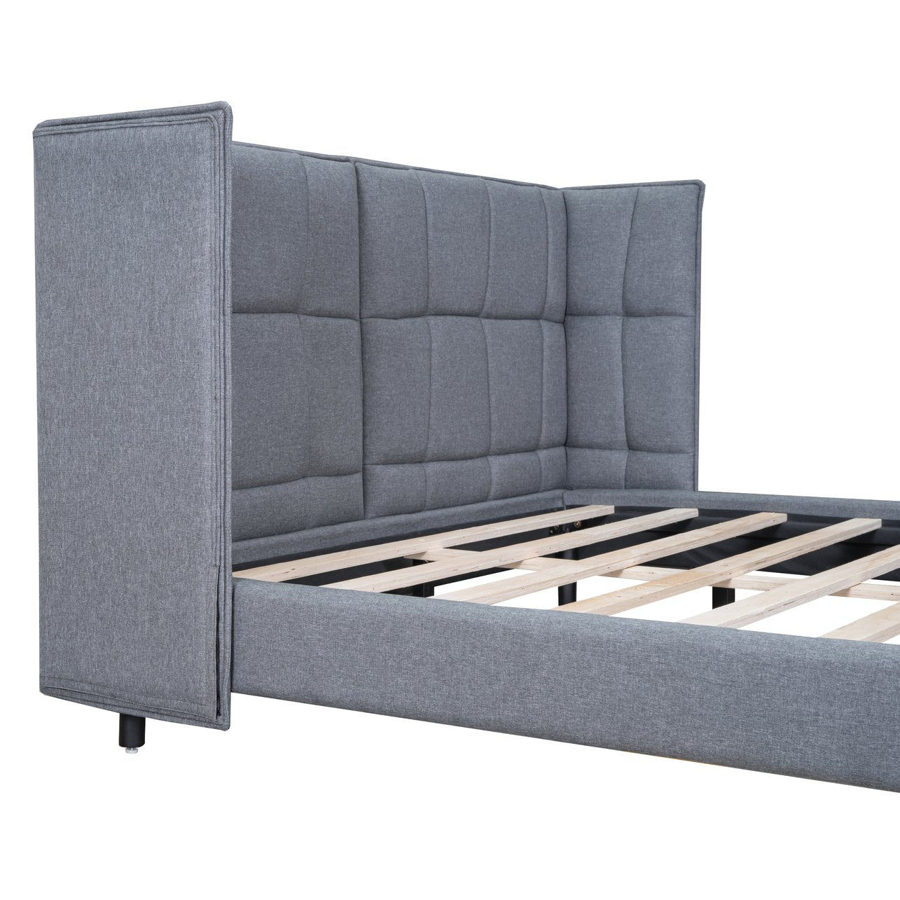 - [Premium Upholstery]Wrapped in luxurious linen fabric, available in chic white or sophisticated gray, our bed exudes elegance and comfort.