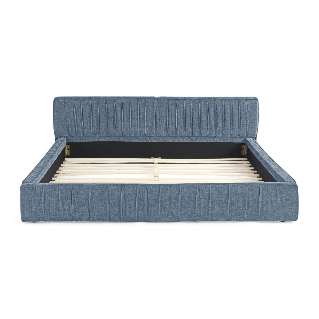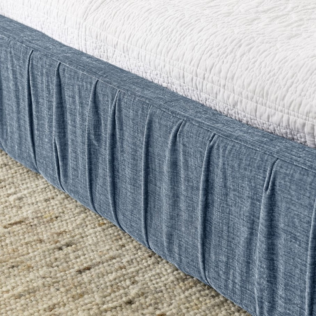 - Upholstery: Plush chenille fabric with pleated headboard detail for a modern, textured look