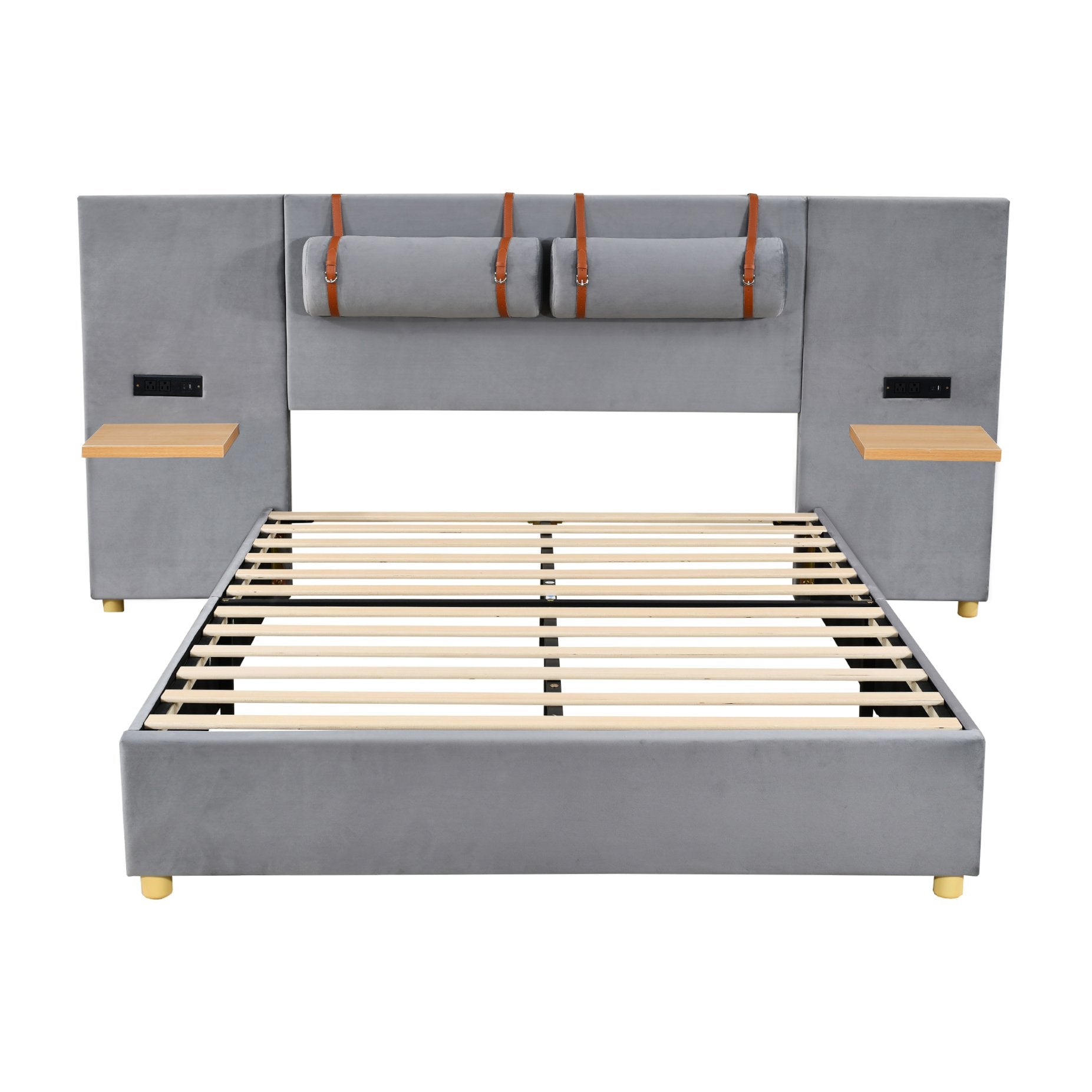 - Built-in charging: Power outlets and USB ports on both sides of the headboard for easy charging of phones, tablets and bedside devices.