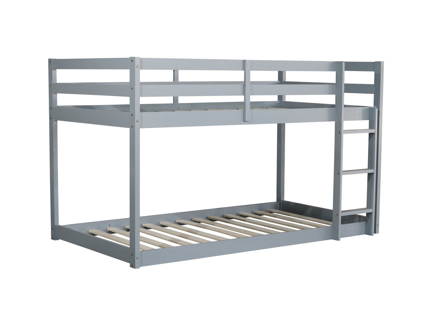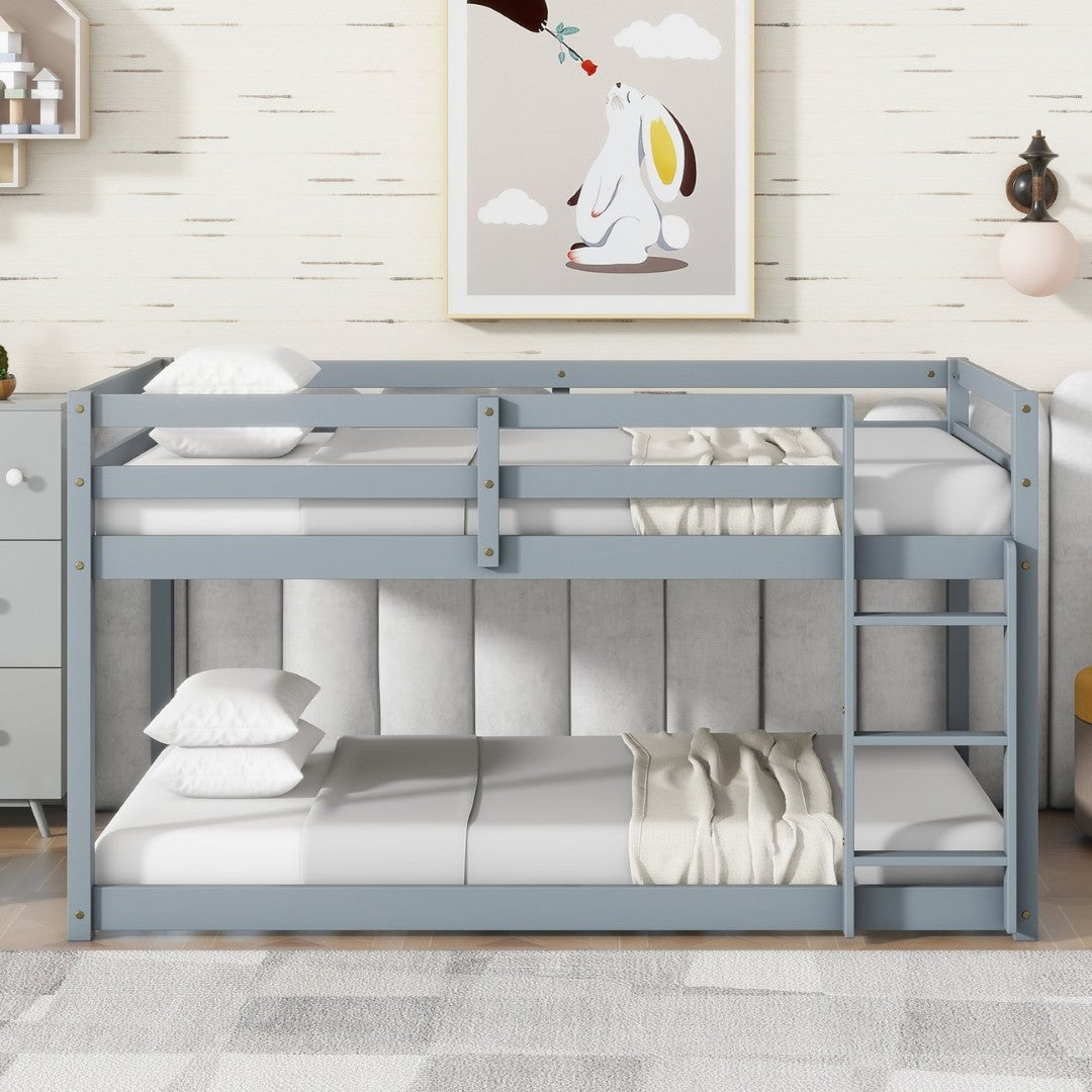 Experience smart, space-saving design with this solid rubberwood twin-over-twin floor bunk bed. Thoughtfully crafted for durability and everyday comfort, its low-profile frame and strengthened slat system provide sturdy support while keeping a sleek, modern silhouette in your bedroom. The open area beneath the lower bunk offers flexible use — play, storage, or study — making this bed ideal for children's rooms, guest spaces, or compact apartments.