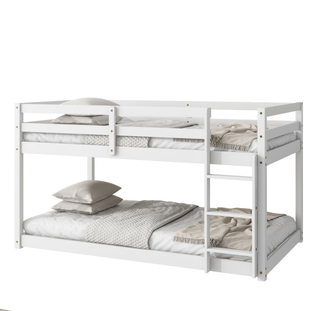 - #1 [Twin over twin bed Design]The low height feature of this twin over twin bunk bed not only ensures better stability but also increases versatile utilization. The unique design offers diverse sleeping preference as well as optimizing storage space. The ladder is crafted with a wider width to provide more spacious steps and solid support, making it easier for you to climb up and down the ladder.