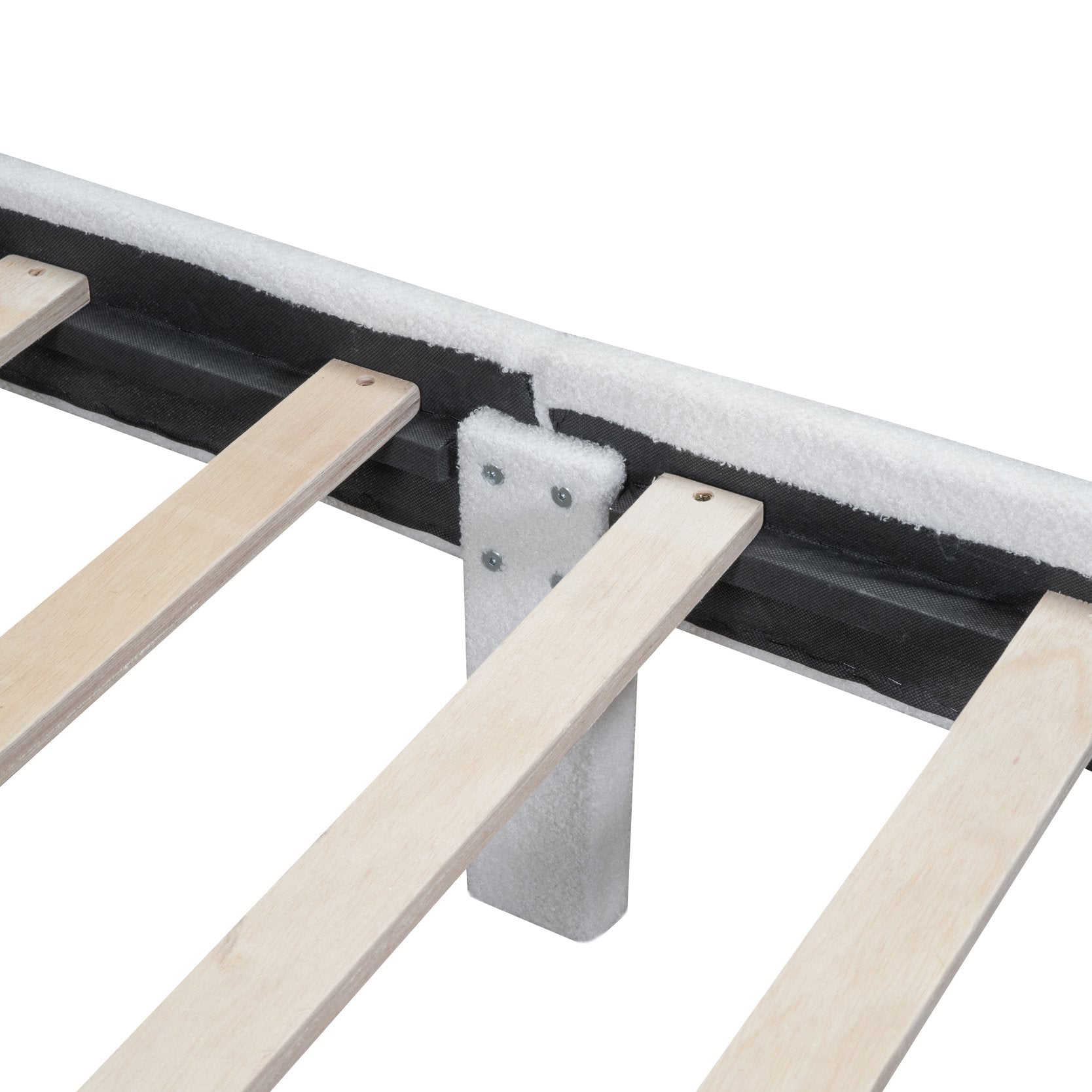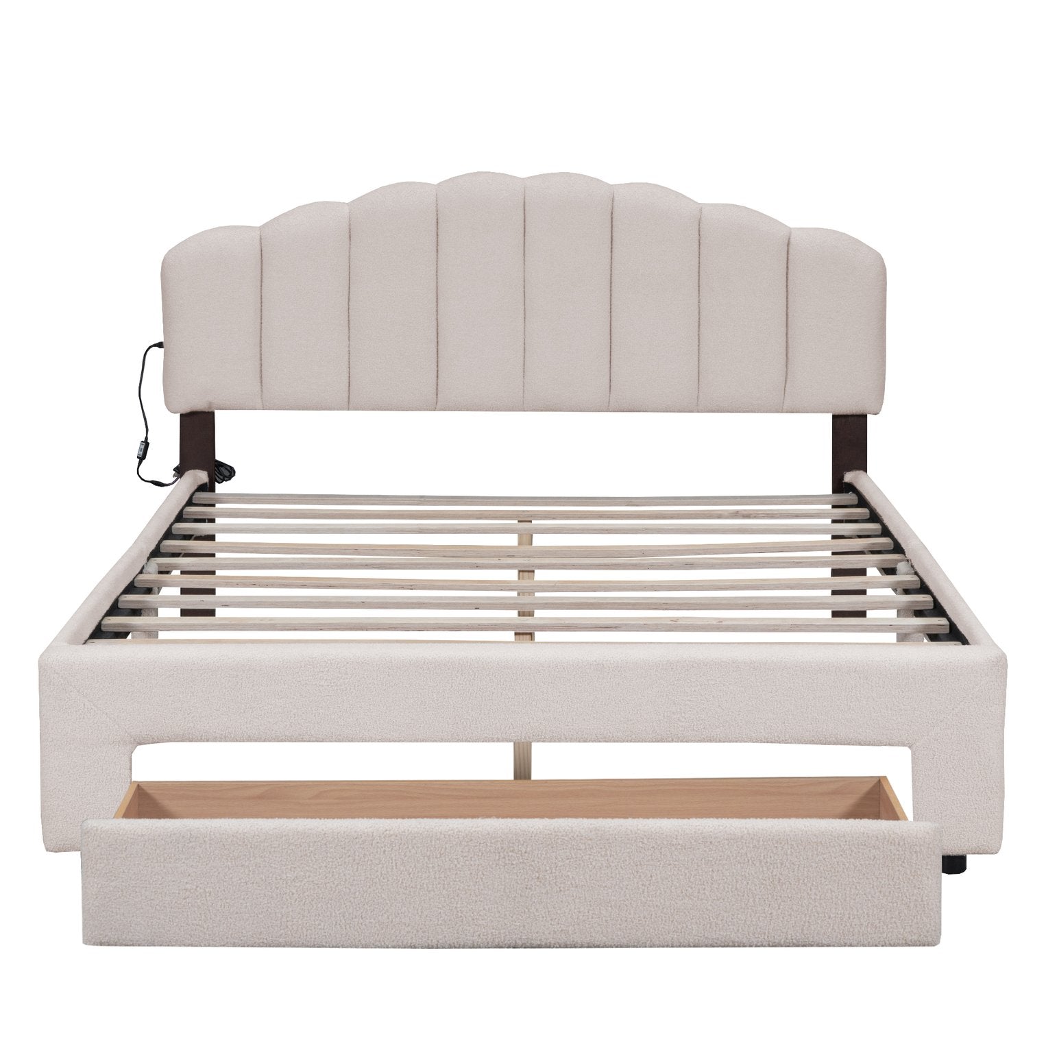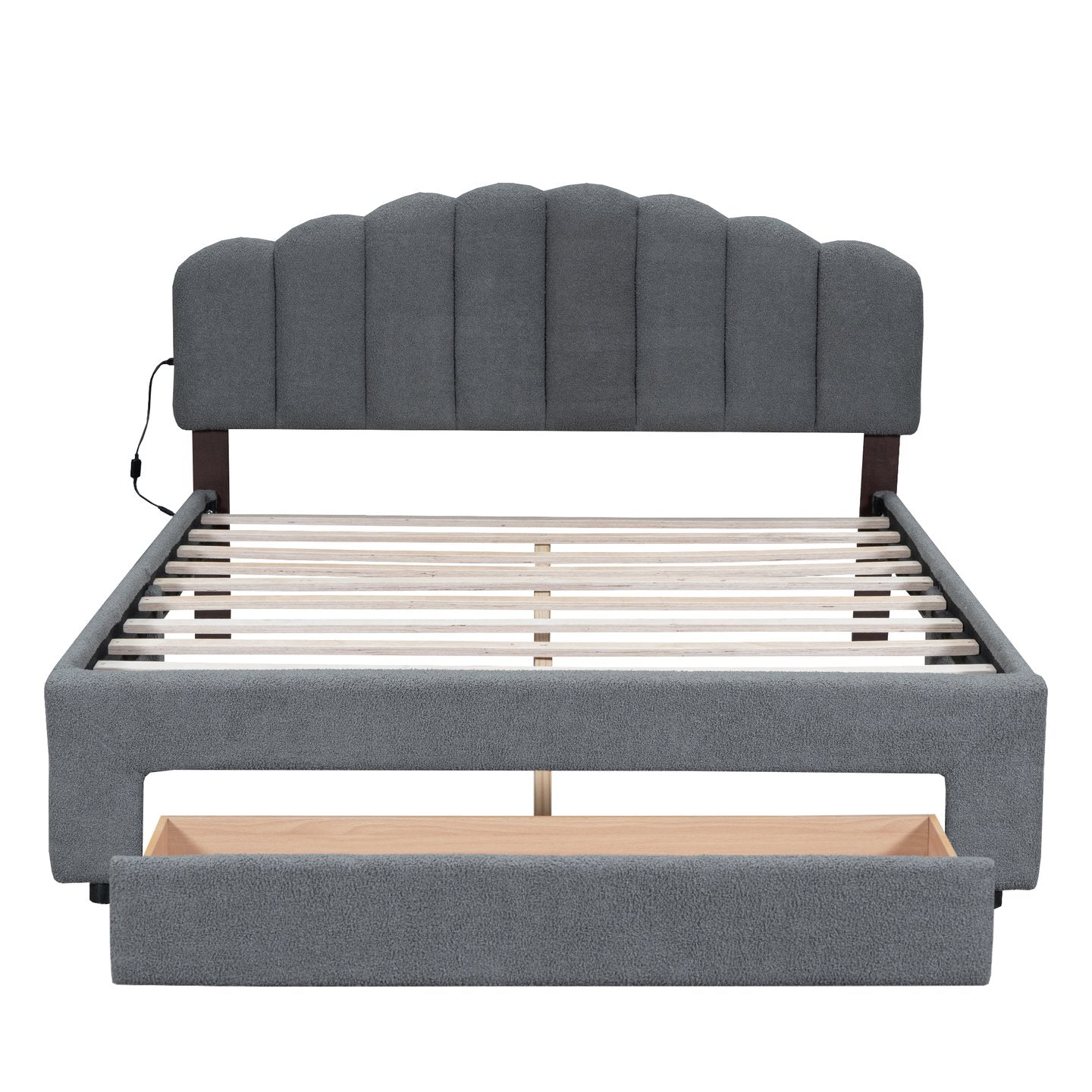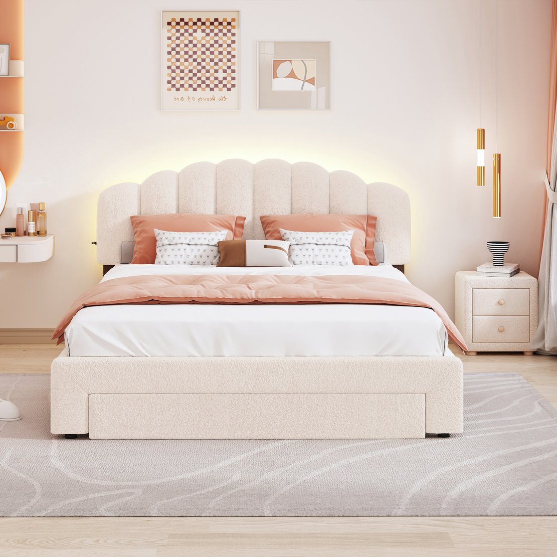 Give your bedroom a cozy, modern upgrade with this Teddy Fleece Upholstered Platform Bed and included nightstand. Soft teddy fleece upholstery, clean-lined construction, and built-in LED lighting make this set both inviting and functional — ideal for relaxing, charging devices, and setting the mood. Thoughtful details like USB ports in the headboard, a sturdy plywood frame, and a low-profile platform design deliver comfort and convenience without the need for a box spring.