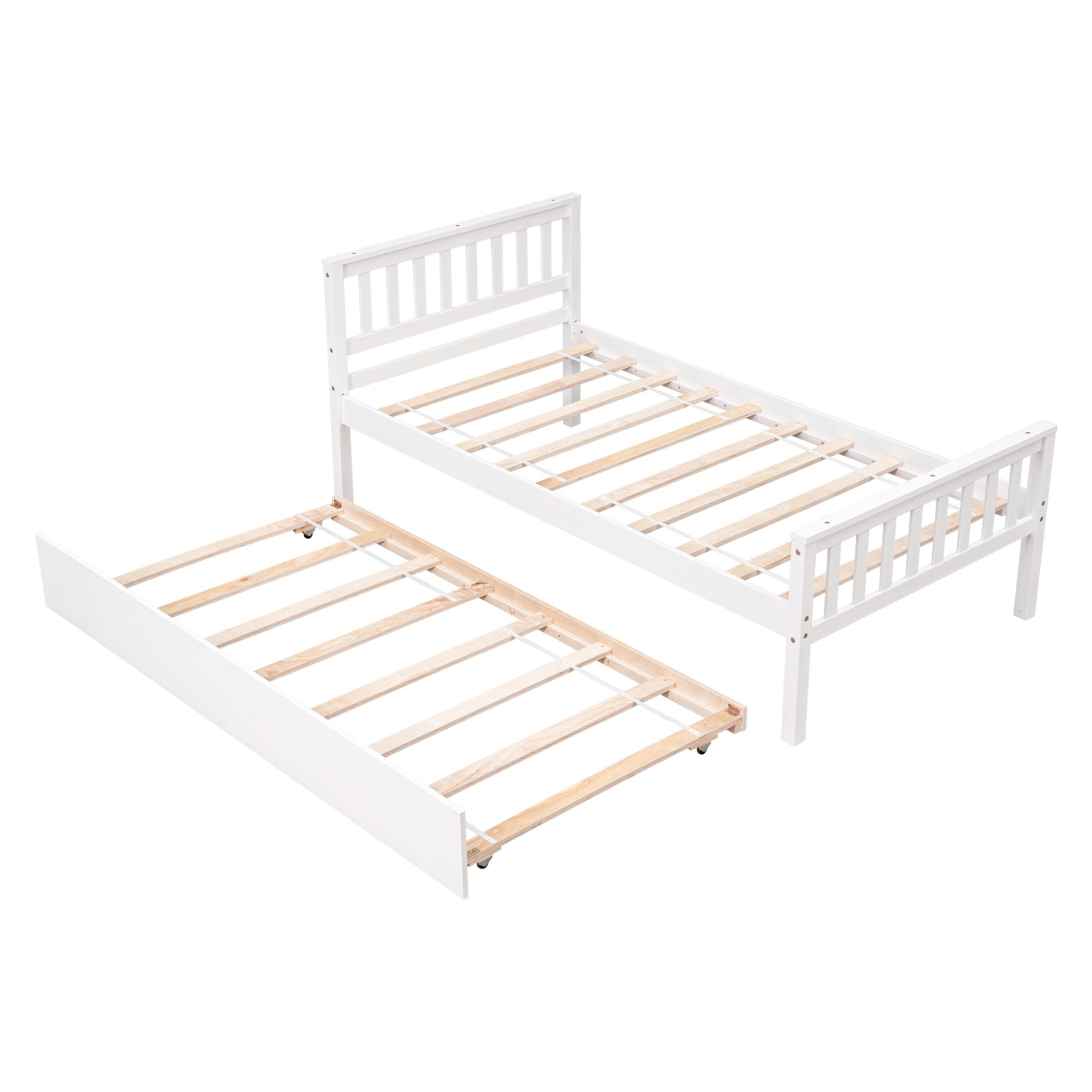 - [Easy Assembly] This twin bed with trundle is delivered in one package, along with the manual and full set of hardware necessary to guide you through the process of assembly, and the bed will definitely be assembled conveniently.