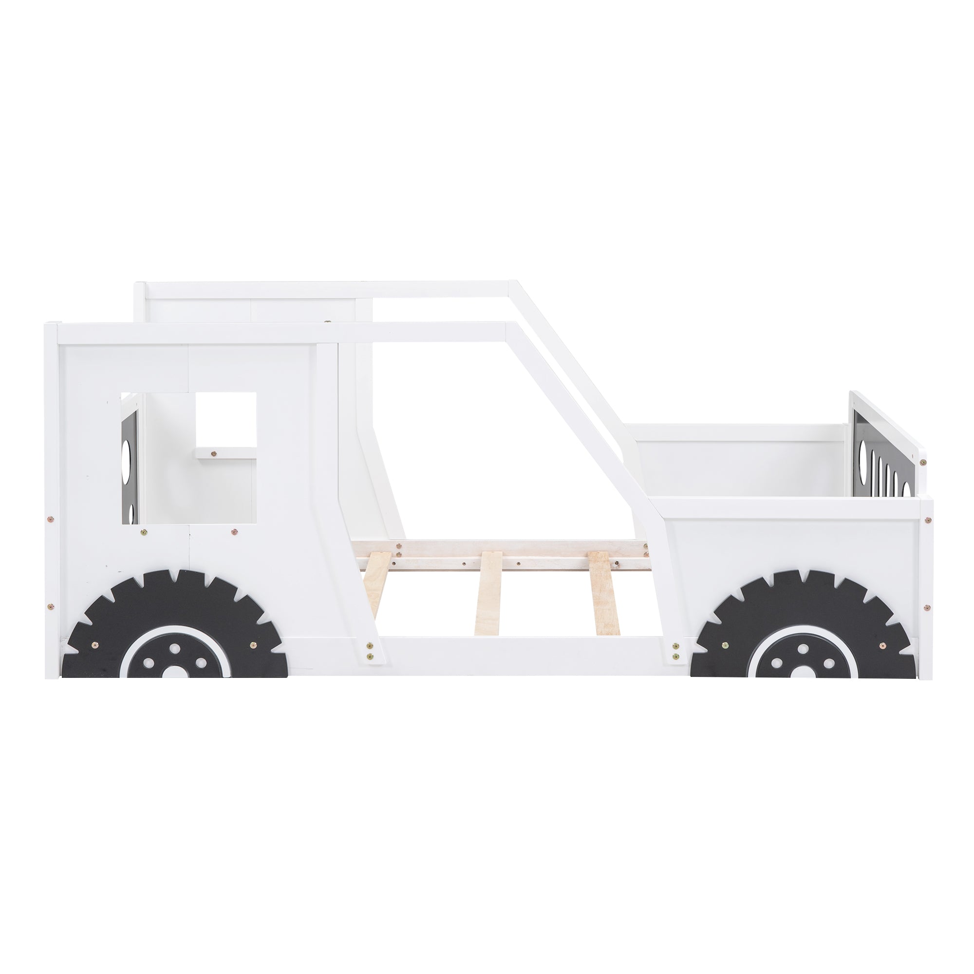 - [Wheels Shape] The fun and playful classic car design is completed by decorative wheels. This piece is mattress ready with slatted rail supports.