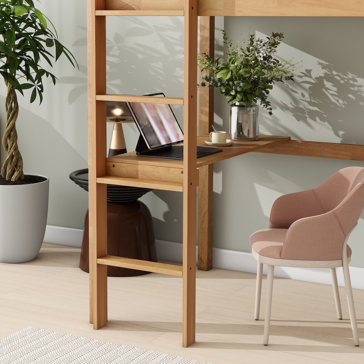 - Built-in workspace: Integrated desk under the loft provides a dedicated area for homework, reading, and storage of daily items—ideal for small bedrooms.