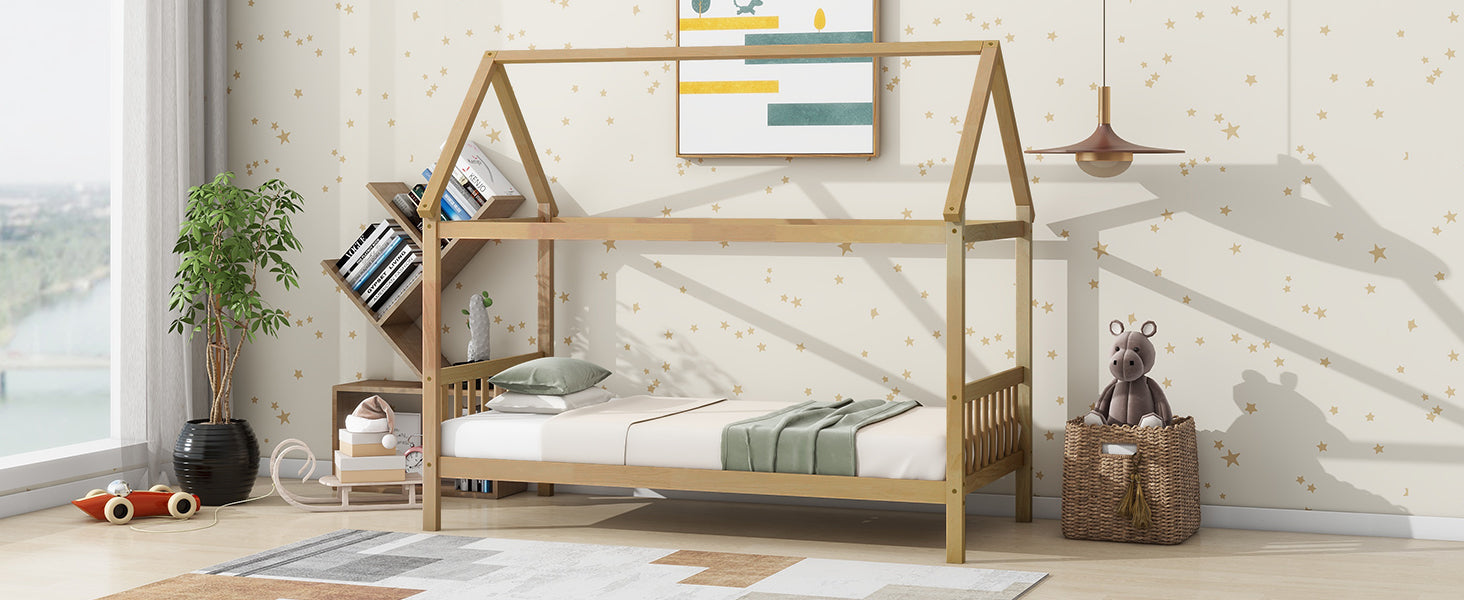 - #1 [House-shaped Design]This intelligible design of house-shaped structure not only provides the extra privacy for the need of a sound sleep, but also inspires the imagination for closing to the nature. With this natural and decorative bed design of the house-shaped outline, the cosy living space can be easily transformed into a neat and fascinating bedroom.