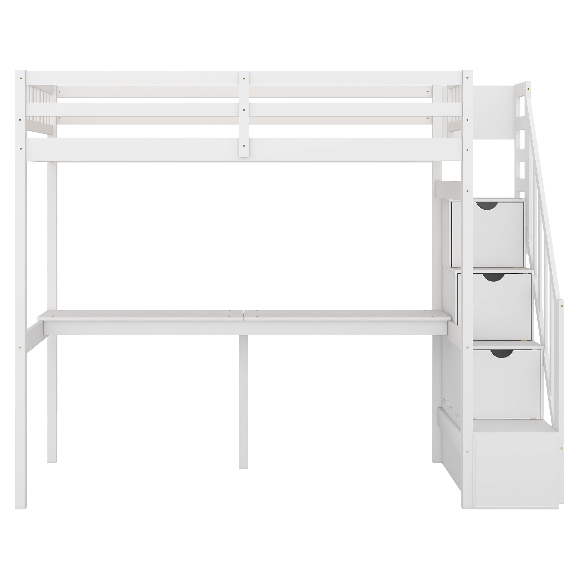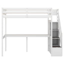 Create a smart, stylish sleep-and-study zone with this twin loft bed that maximizes floor space while keeping everything organized and accessible. Built with a sturdy pine and MDF frame and a clean white finish, it combines a full-length guardrail twin sleeping area, integrated storage stairs, and a roomy built-in desk—ideal for kids’ bedrooms, small apartments, or multifunctional rooms.