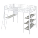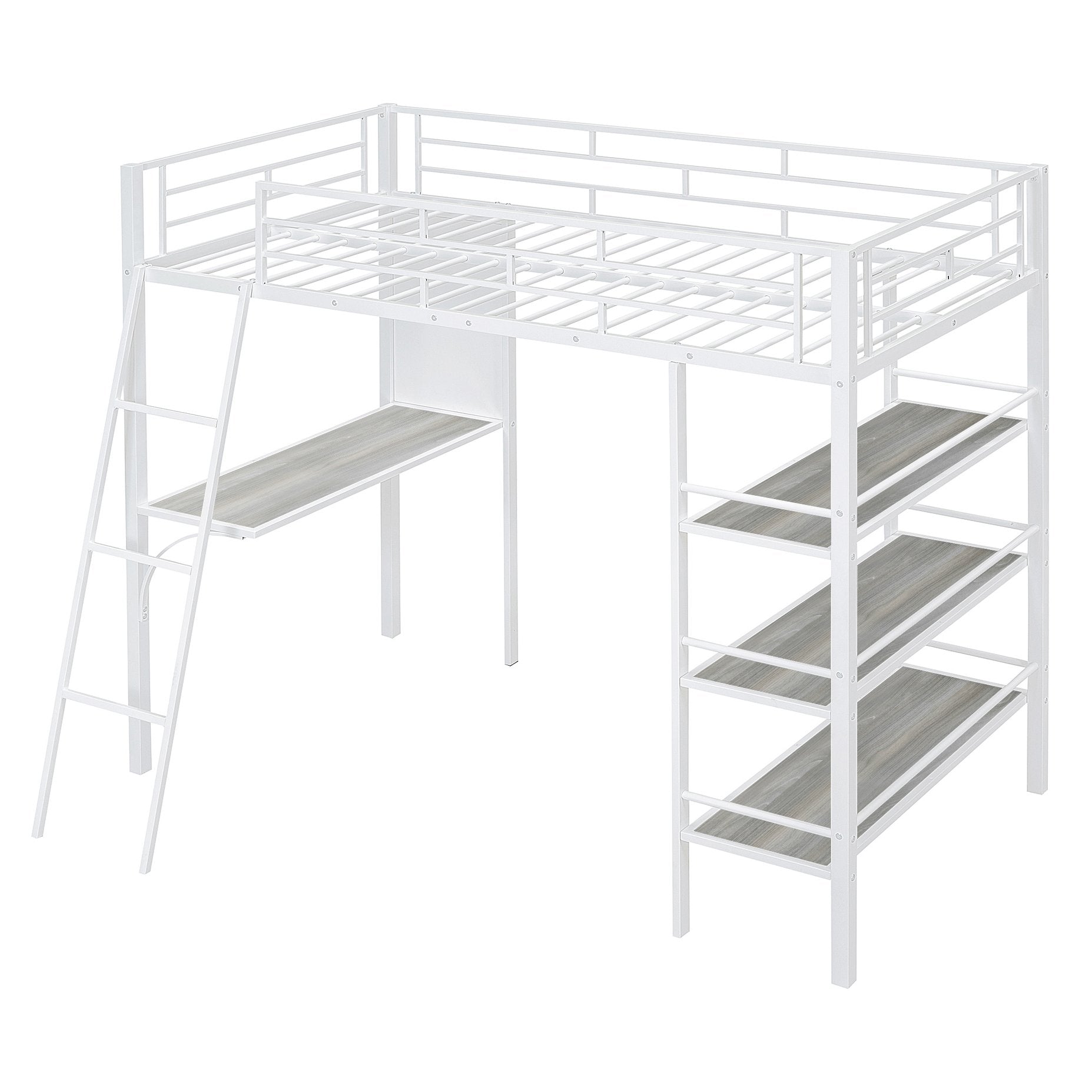 - [Maximized Space]The loft bed has 3-layers open shelves to lay out whatever you want including the lamp, books, toys and so on.And the shelves are just besides the desk, it is easy for you to access anything you need.