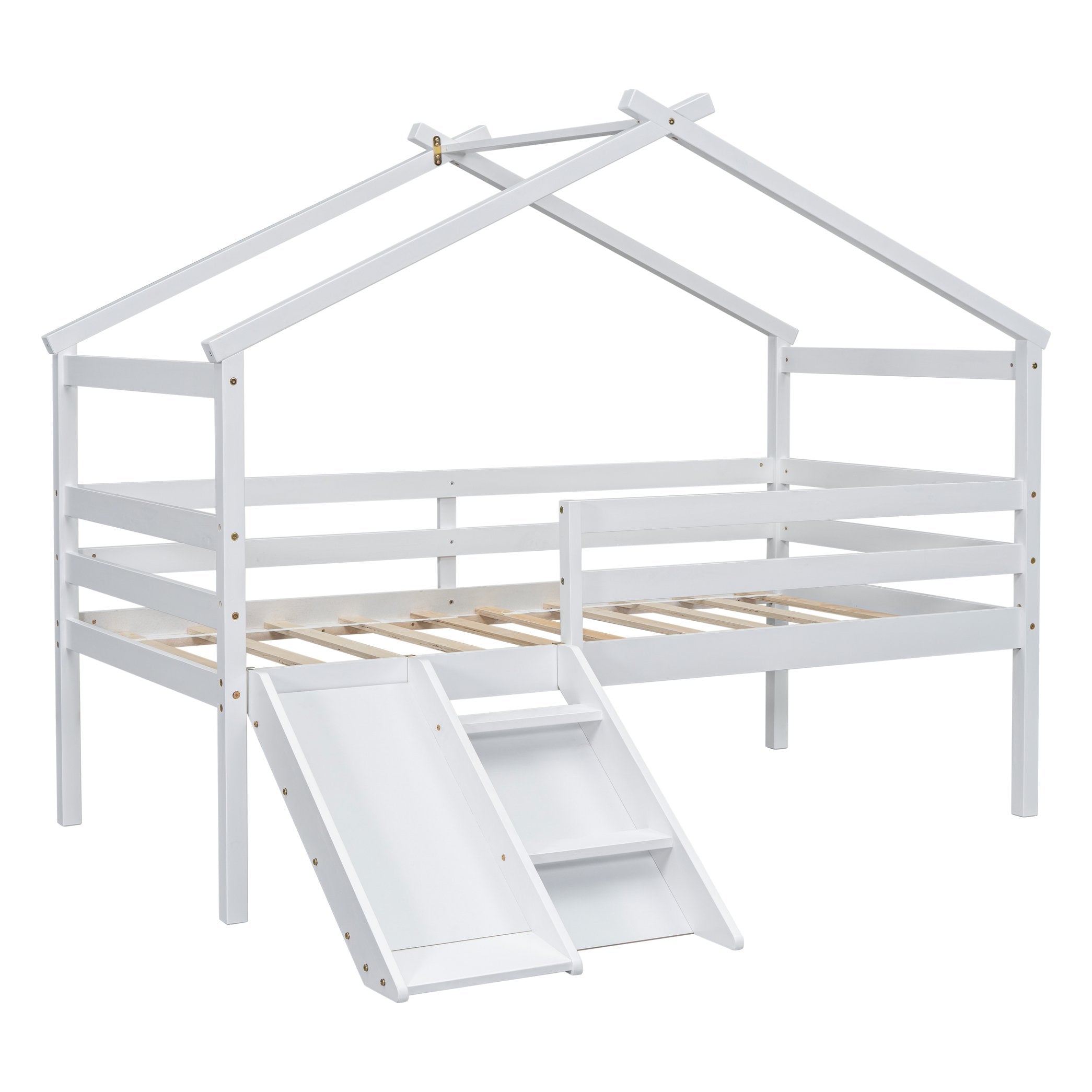 Bring functionality and fun to your child’s bedroom with this stylish Twin Low Loft House Bed with Slide. Designed to maximize play and sleep space, its clean house-frame silhouette and neutral grey finish blend with many décor styles while offering a secure, multi-use area beneath the loft. Durable construction and thoughtful safety features make it an ideal centerpiece for restful nights and imaginative daytime play.
