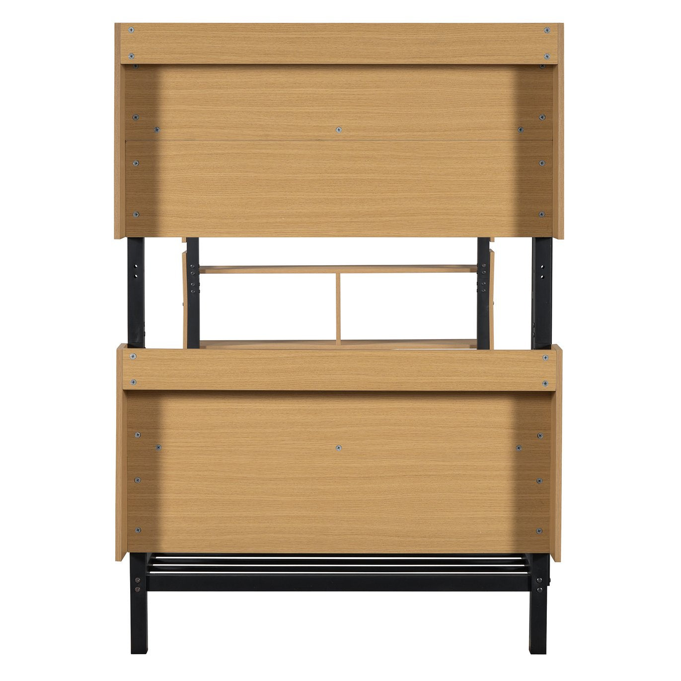 Maximize space and style with this durable Twin-over-Twin metal bunk bed—ideal for kids, teens, guests, or compact living. Thoughtfully designed for everyday use, it combines sturdy construction with built-in storage and safety features so you get a sleep solution that’s both practical and attractive without needing a box spring.