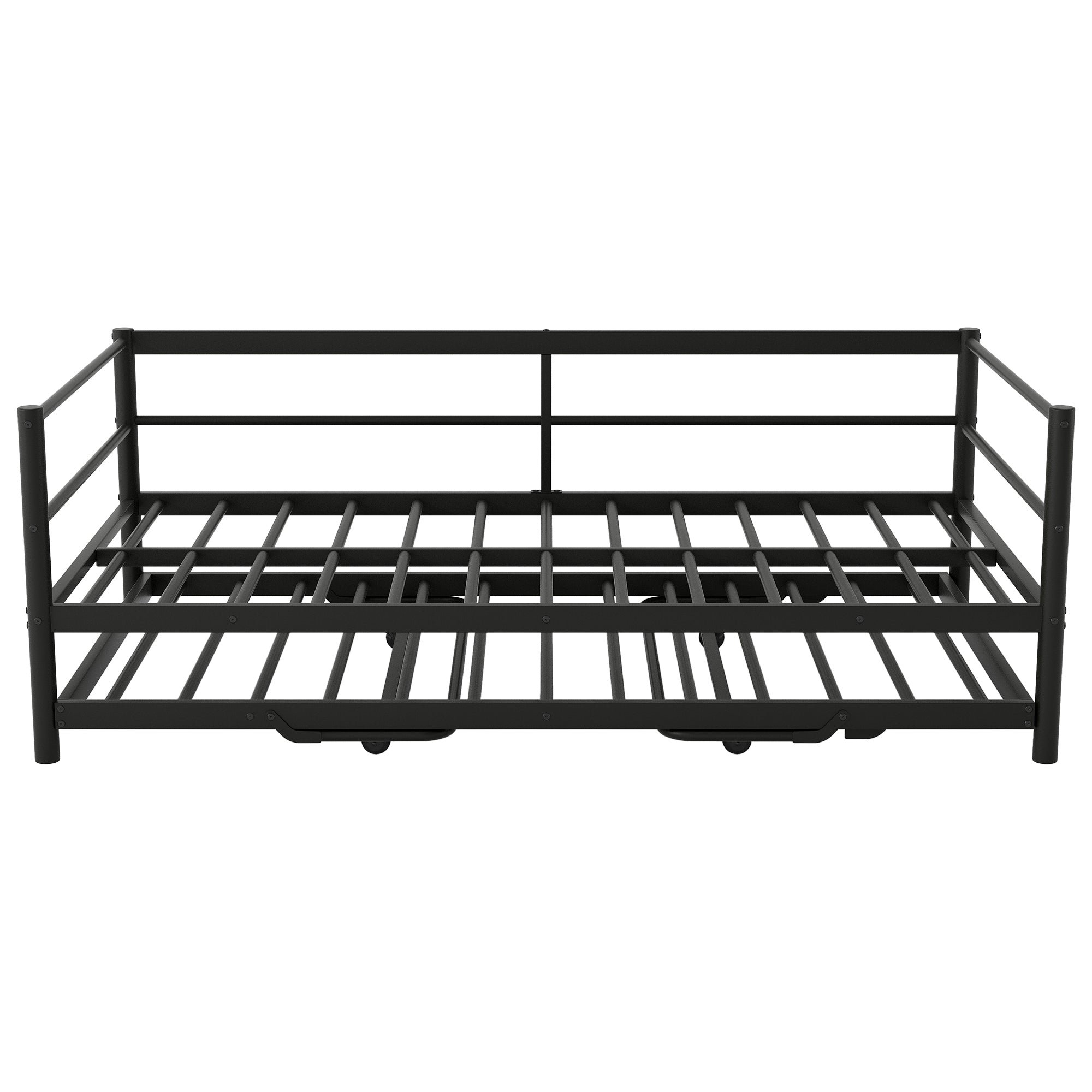 - [Multi-function Daybed] The trundle features braces, it can be risen as high as bed.When you don't want to use the trundle, you can fold it up and put it under the bed. Use as a sofa or bed, this daybed showcases rich industrial style.