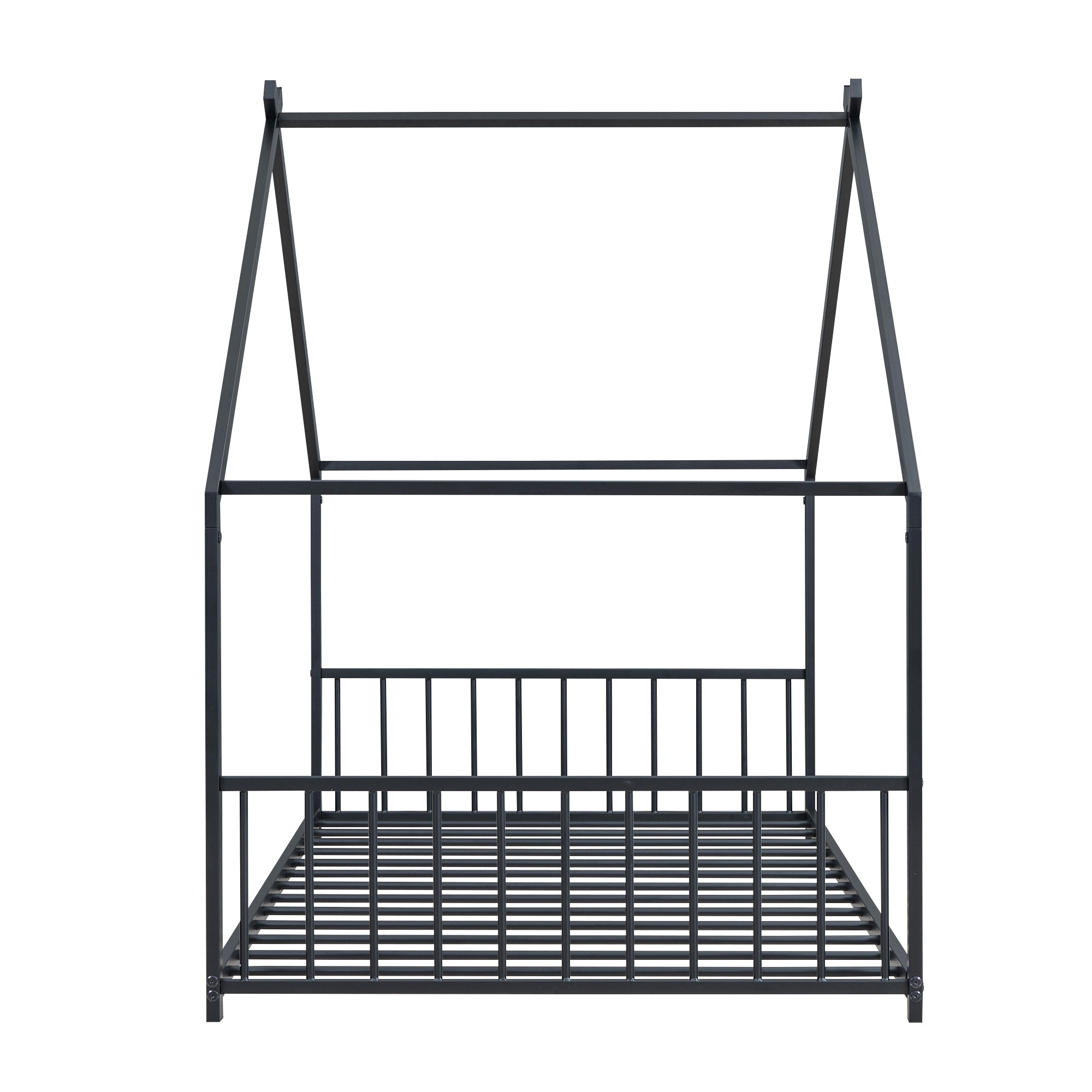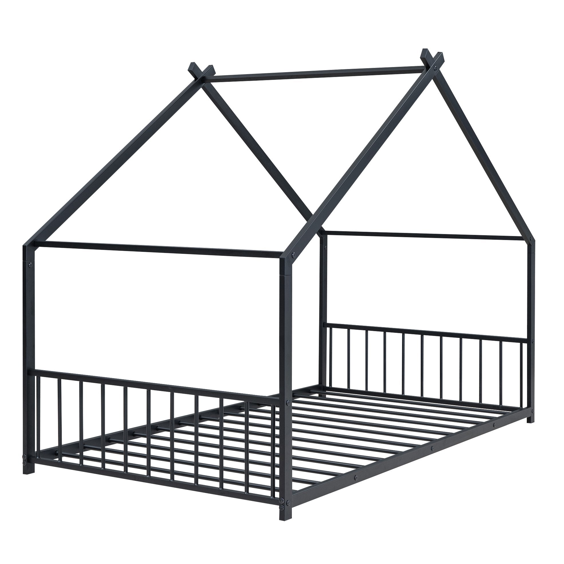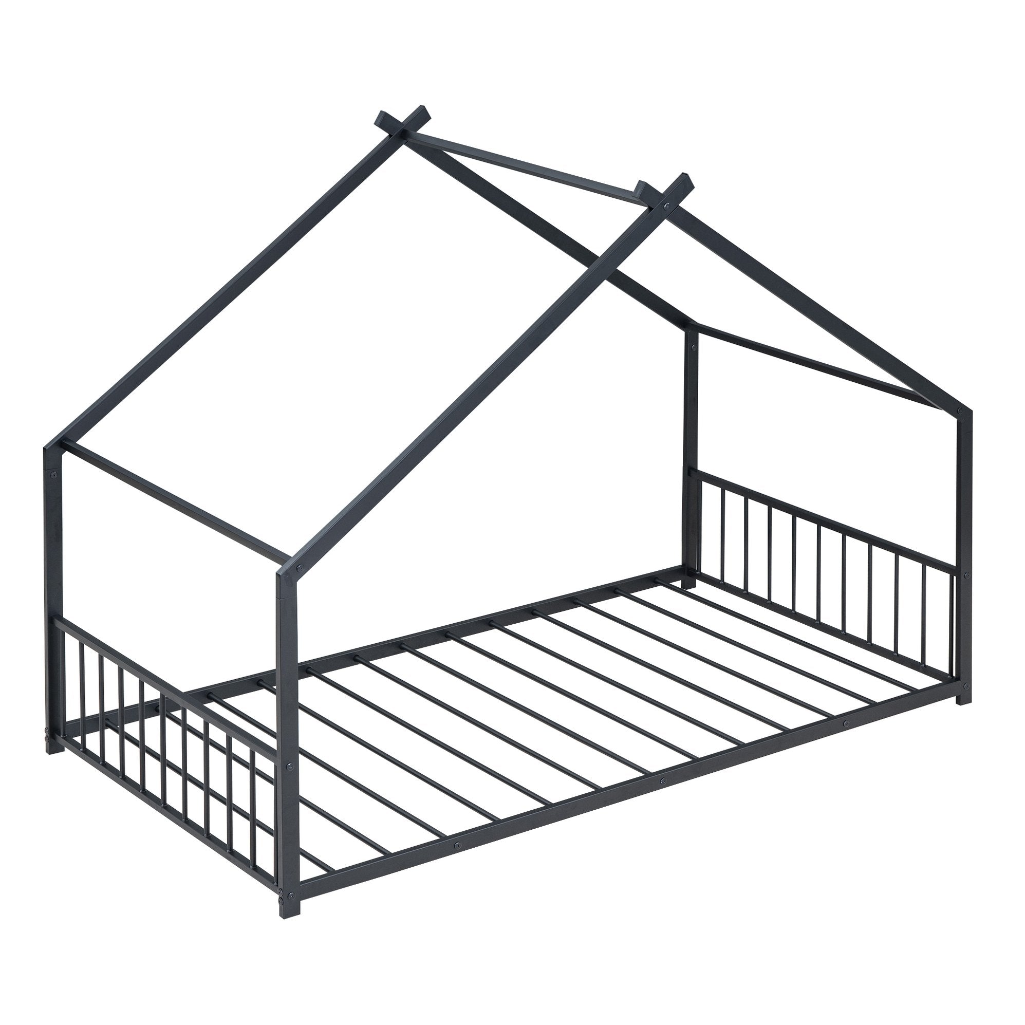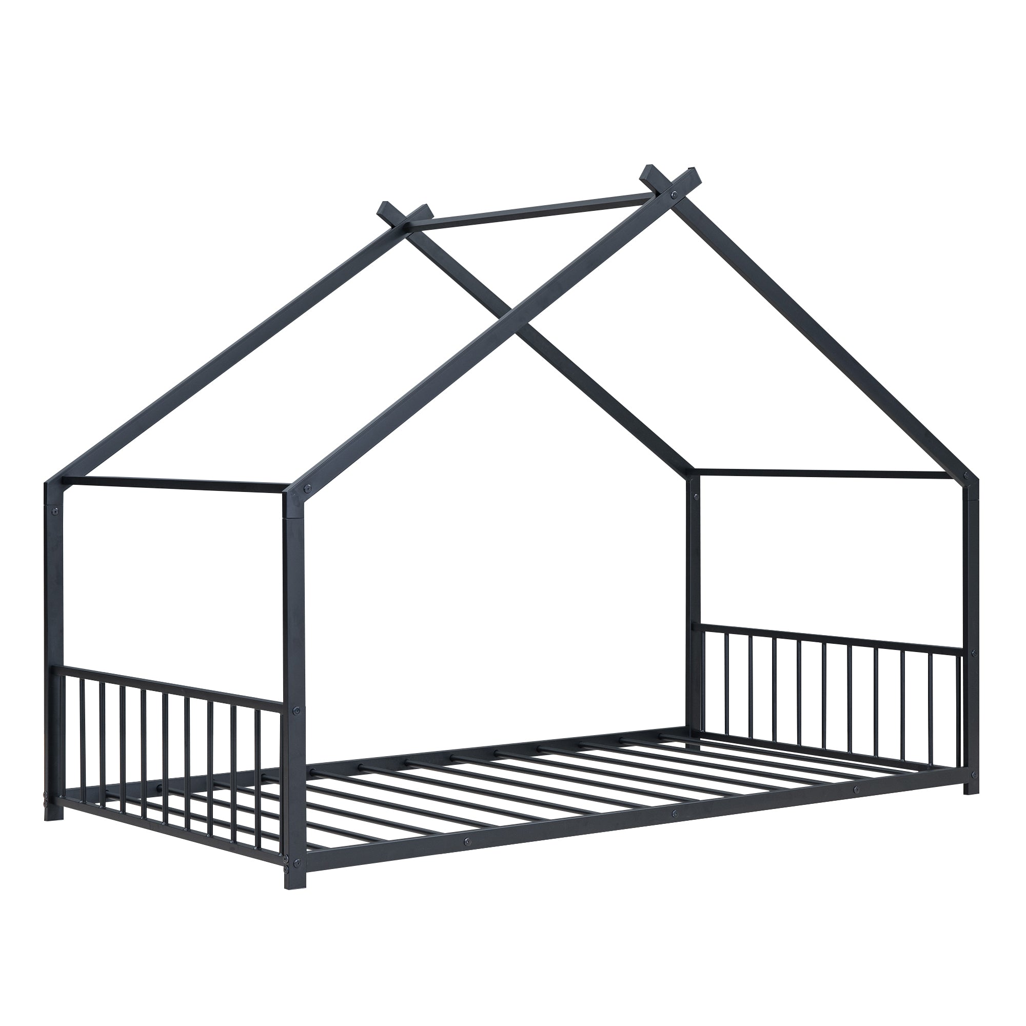 Give your child a cozy, imaginative sleeping space with this twin-size metal house bed. Its simple house-frame silhouette and sturdy metal construction create a semi-enclosed nook that doubles as a playful hideaway, study spot, or TV corner—while providing a durable, safe place for sleep. The neutral black finish pairs easily with any decor and lets accessories or bedding set the tone for a room that grows with your child.