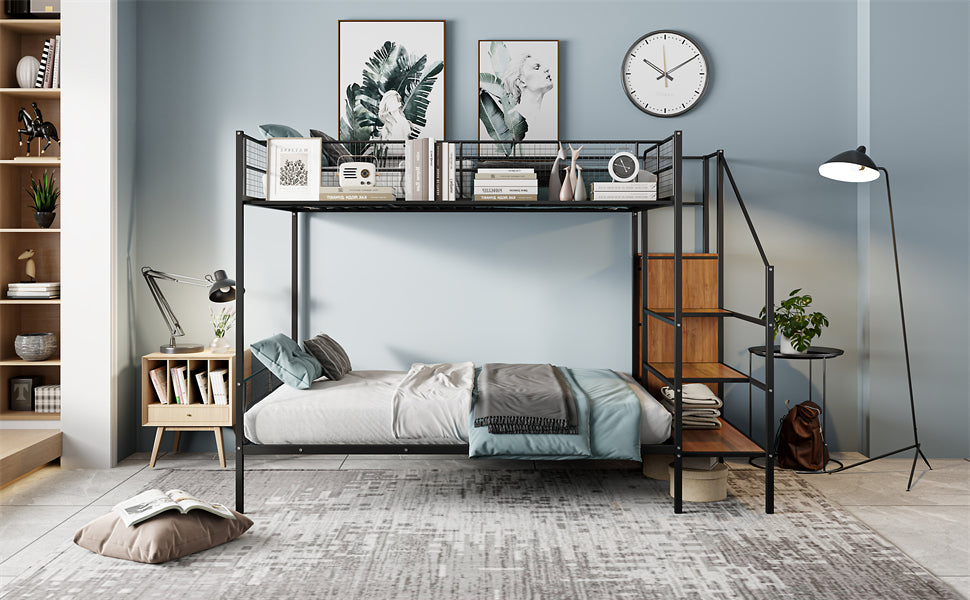 - [Versatile Bed Configuration] This metal bunk bed features a smart design with a single bed on top and a spacious full-size bed on the bottom, making it ideal for families or guest accommodations and providing an excellent space-saving solution.
