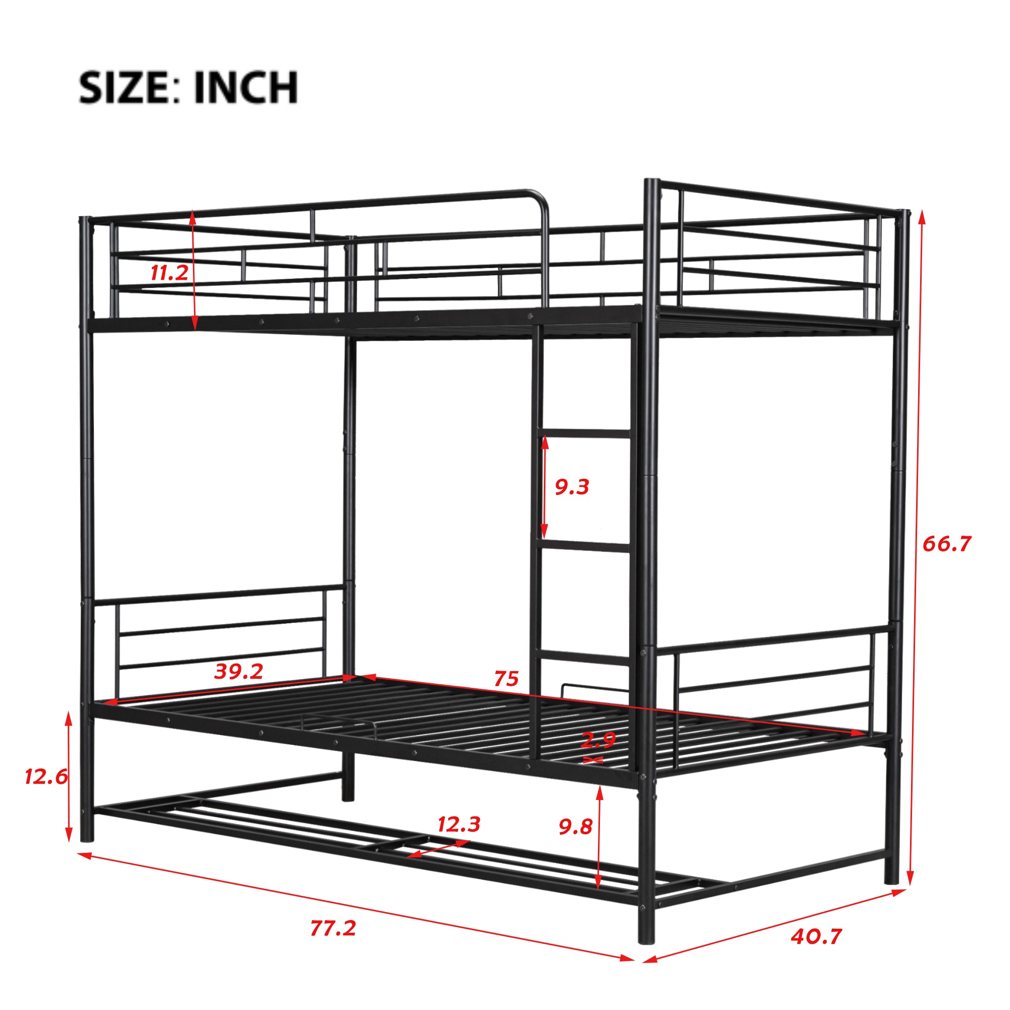 - [Dimensions] Overall Product Dimension: 77.2"L x 40.7"W x 66.7"H. Mattress not included. Some assembly is required, although we have provided clear instructions and tools.