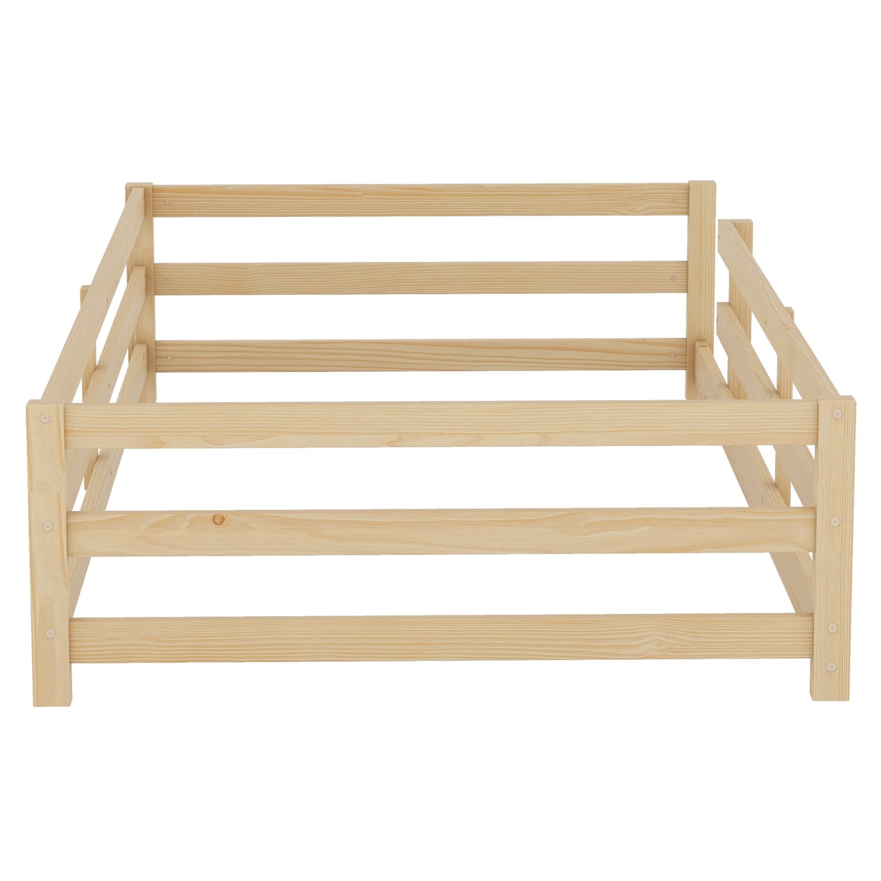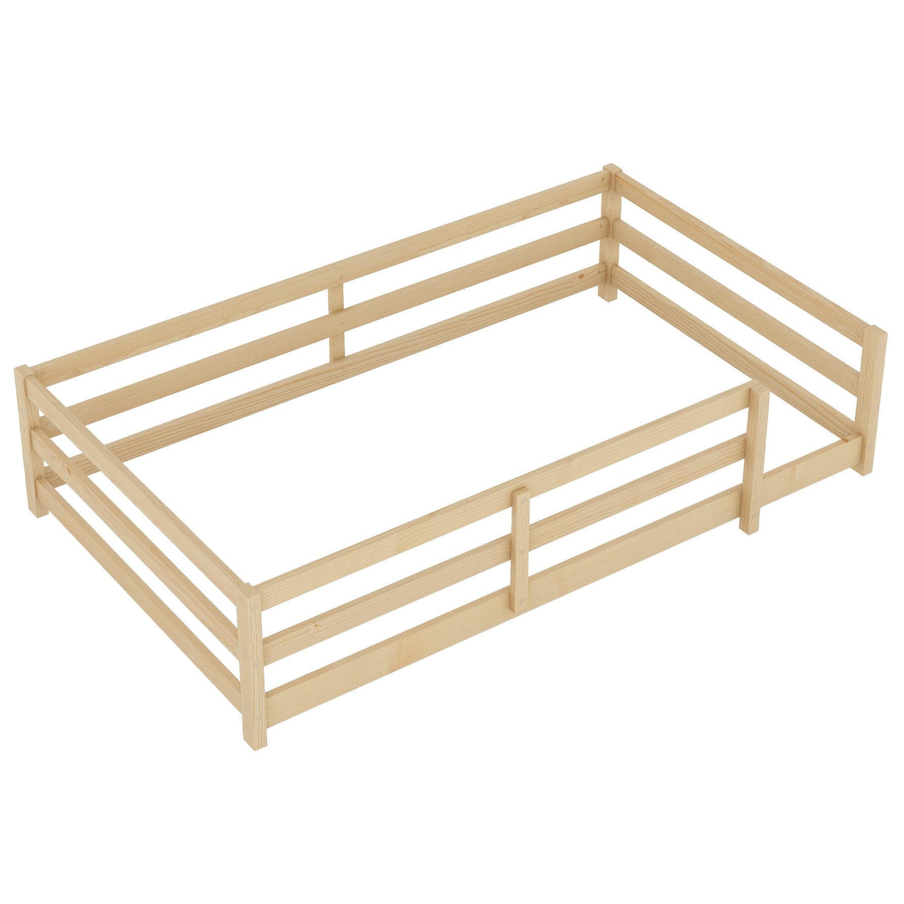 - [Floor Bed with Fence]The four guardrails of the Montessori floor bed remain intact and uncut, thus this floor bed is more stable compared to ordinary floor beds. The guardrail design is similar to a fence, which not only adds to the product's fun but also creates a safer sleeping environment for children. The height of the guardrails is 15.7 inches.