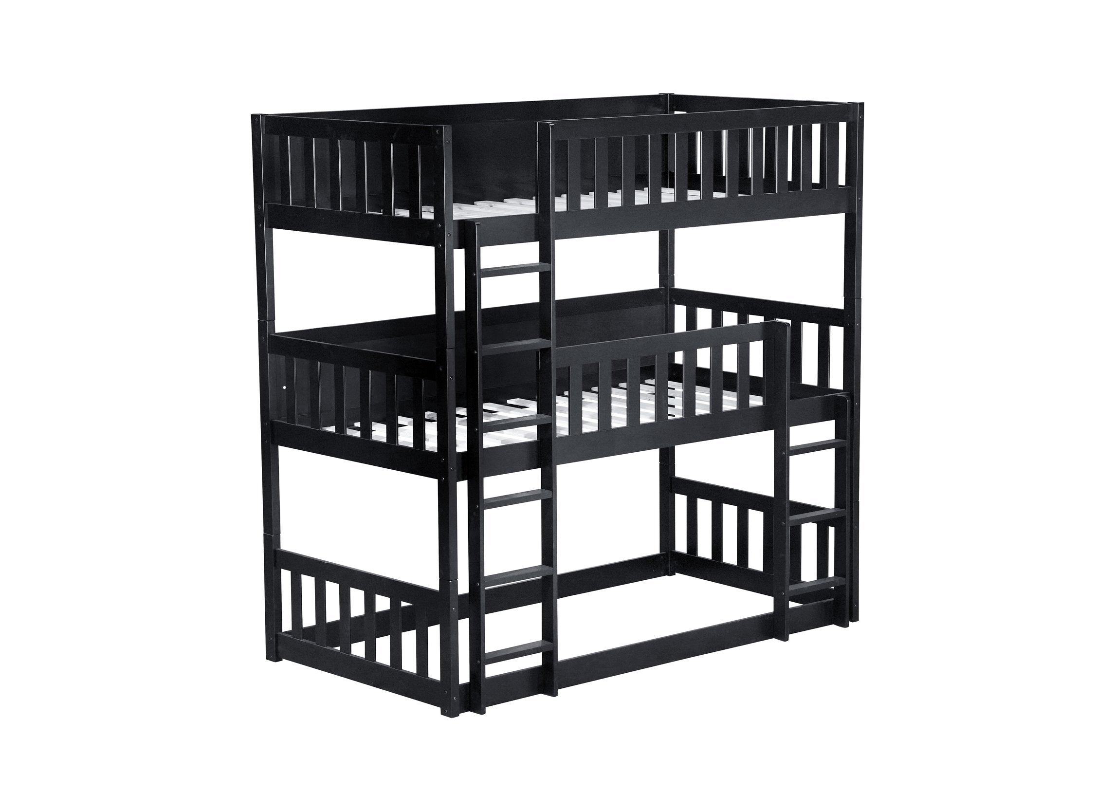 - Bed size: Twin over Twin over Twin — accommodates three standard twin mattresses (suggested mattress thickness: 6" or less).