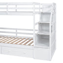 - [Maximized Space] The twin over twin bunk bed can save plenty of room for you to place other furniture in your bedroom. The two drawers and storage staircase provide ample storage for your everyday items.