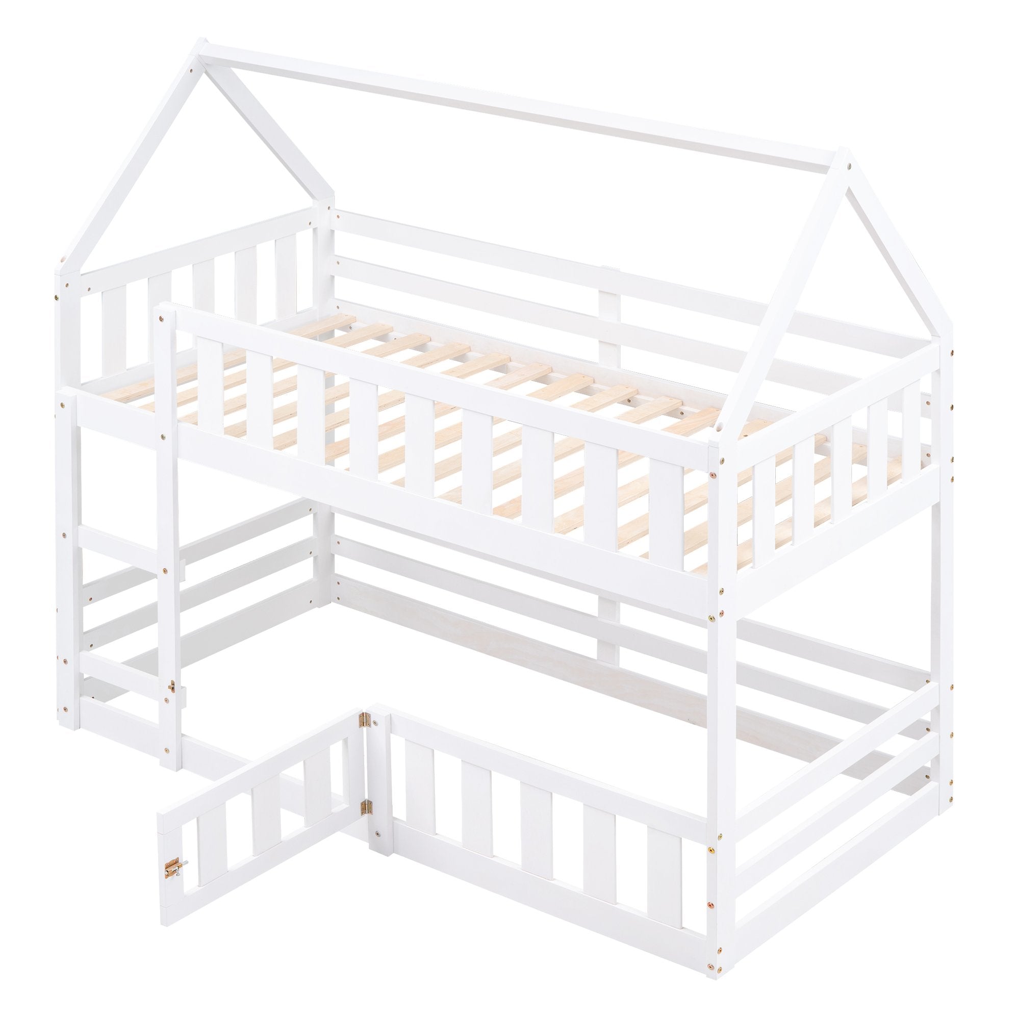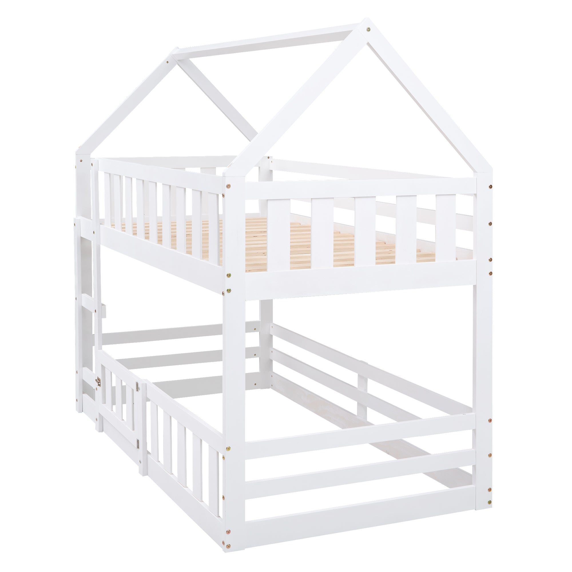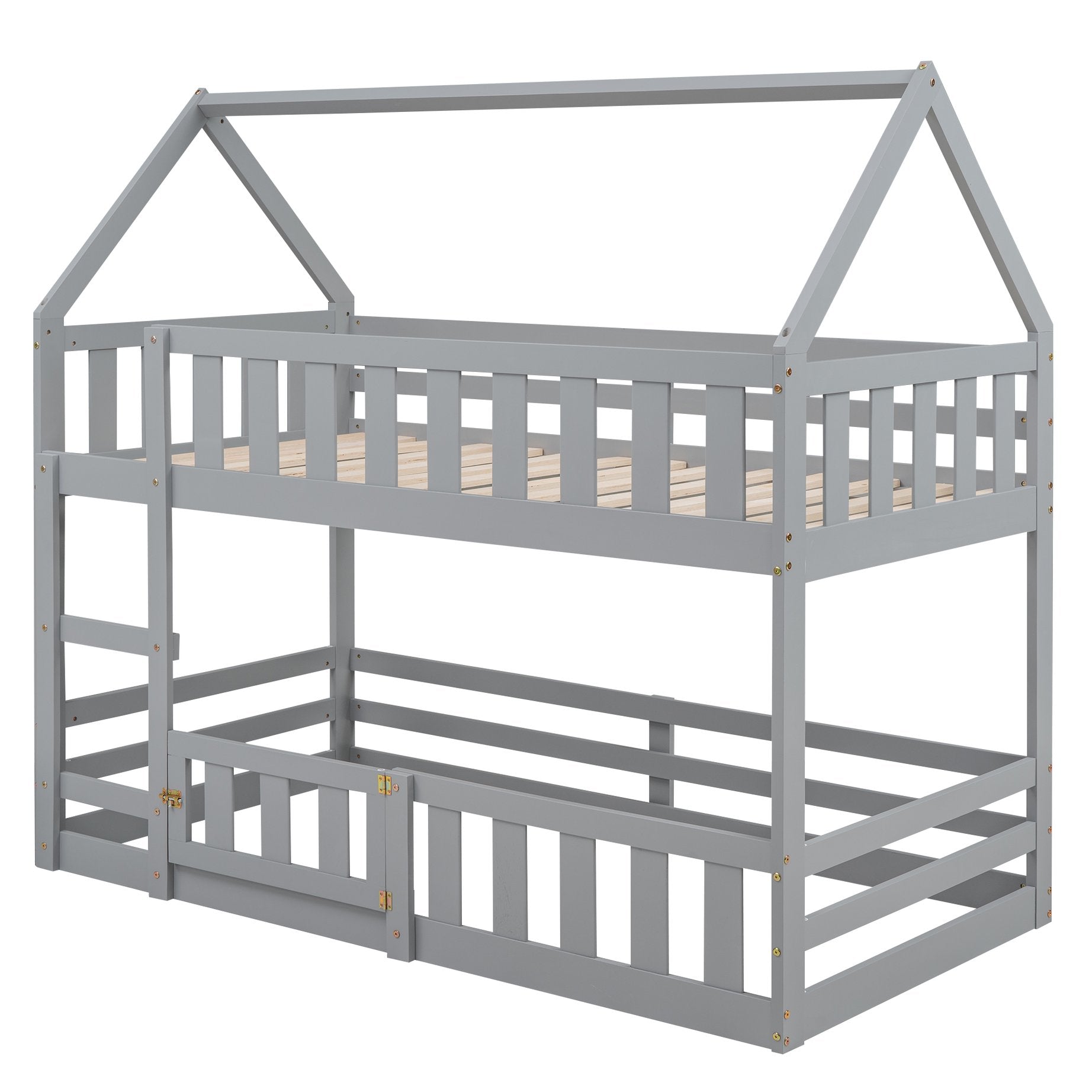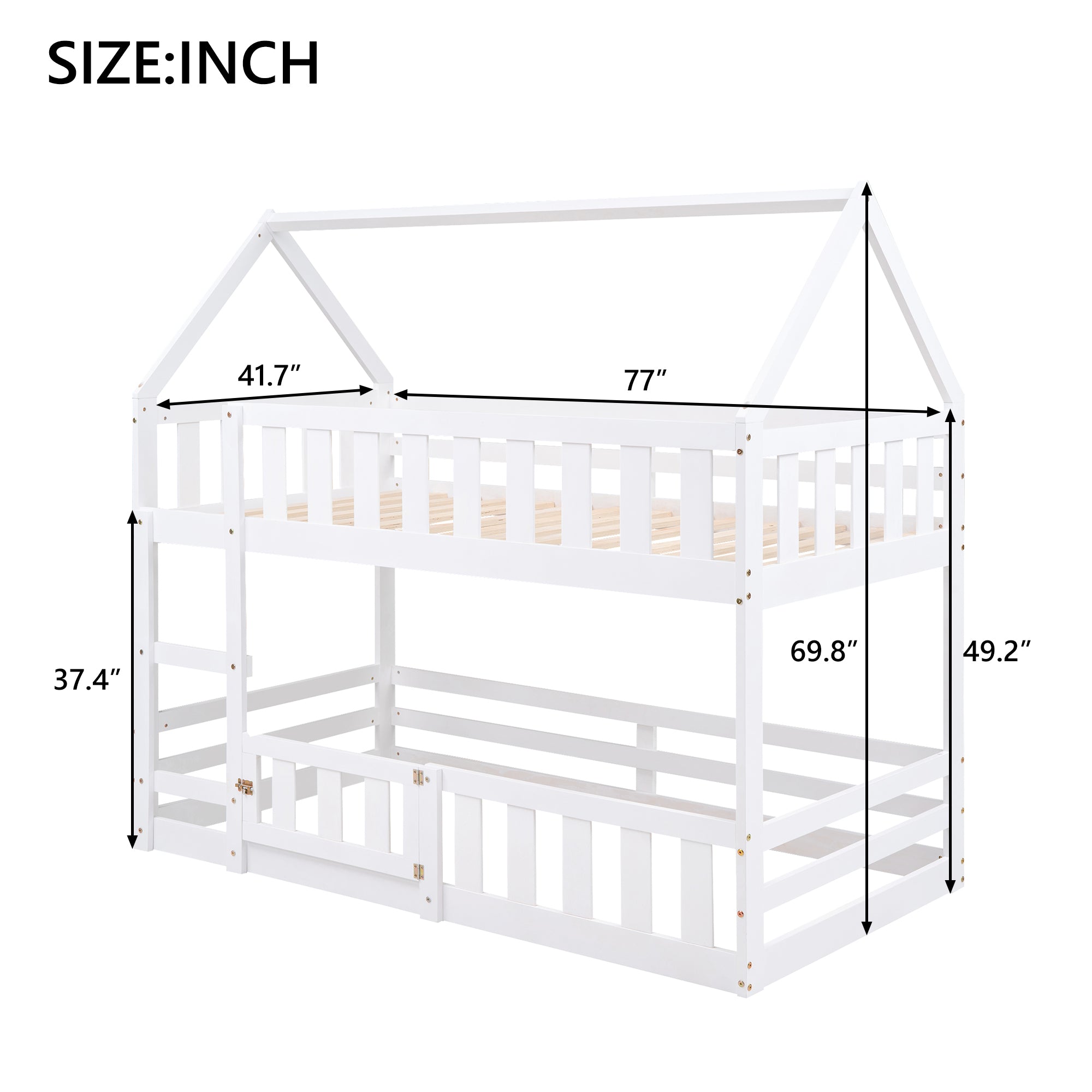 - Safety-first design: full-length guardrail on the top bunk, integrated ladder, and childproof mechanisms