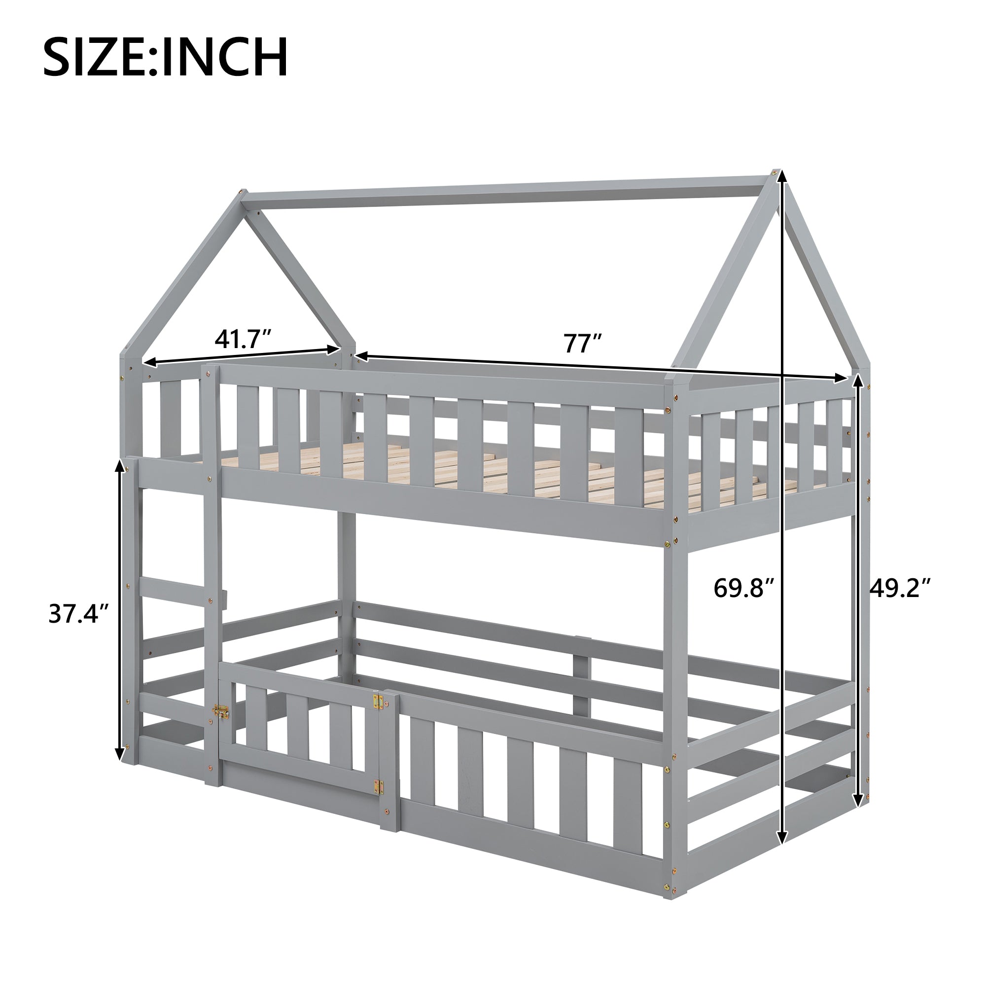 - Prominent product dimensions: Overall — 78" L × 41.4" W × 72" H; Upper bed — 74.8" × 39"; Lower bed — 74.8" × 53"; Total height — 72"