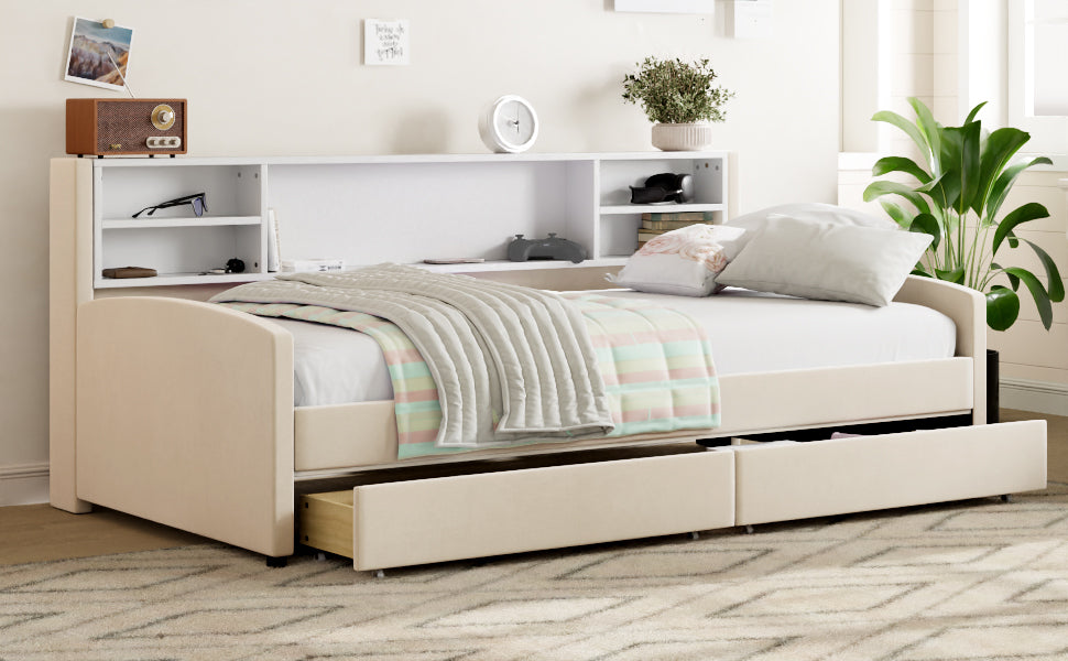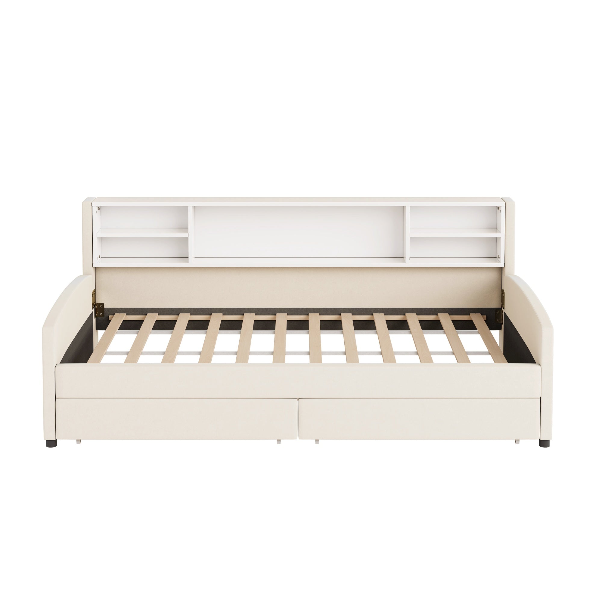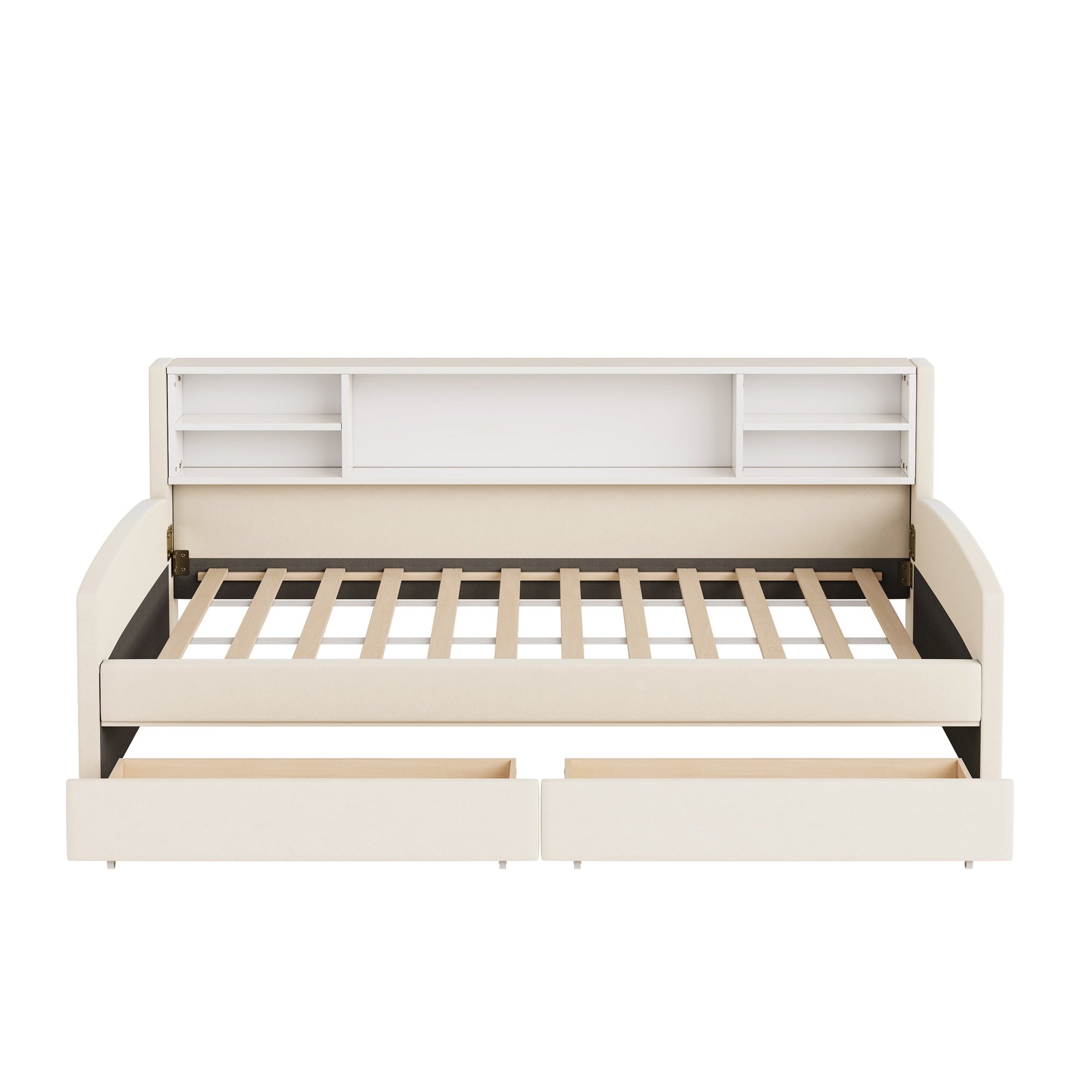- Storage Capacity: Two large smooth-rolling under-bed drawers plus an integrated storage cabinet for linens, clothing, books, or decor.