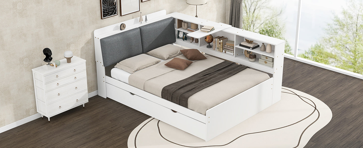 - Storage Headboard: Built-in shelves provide easy access to books, alarm clocks, and bedside essentials—perfect for maximizing small spaces.