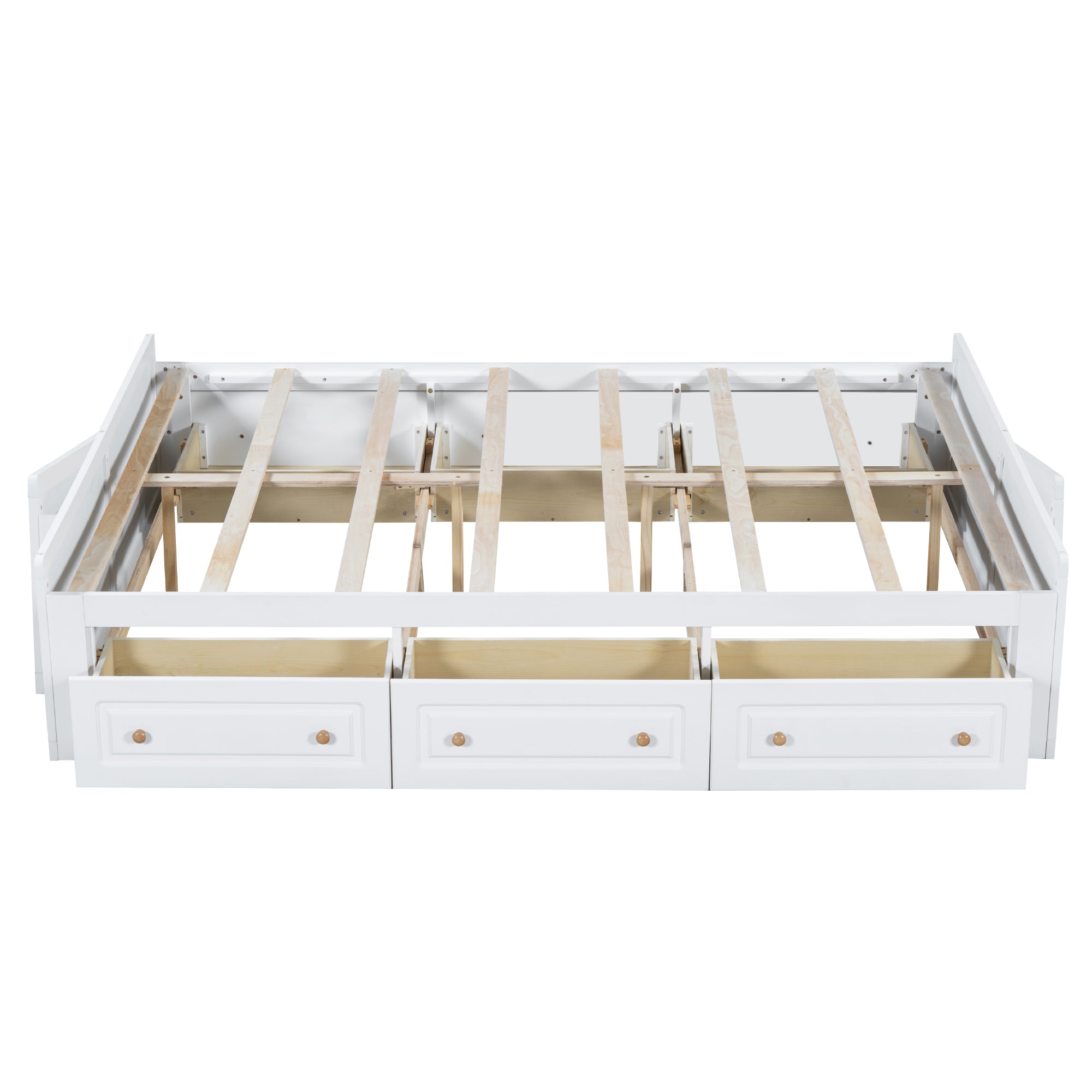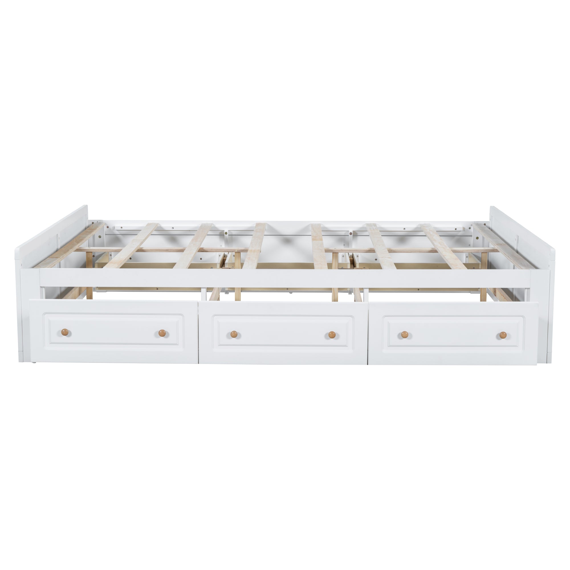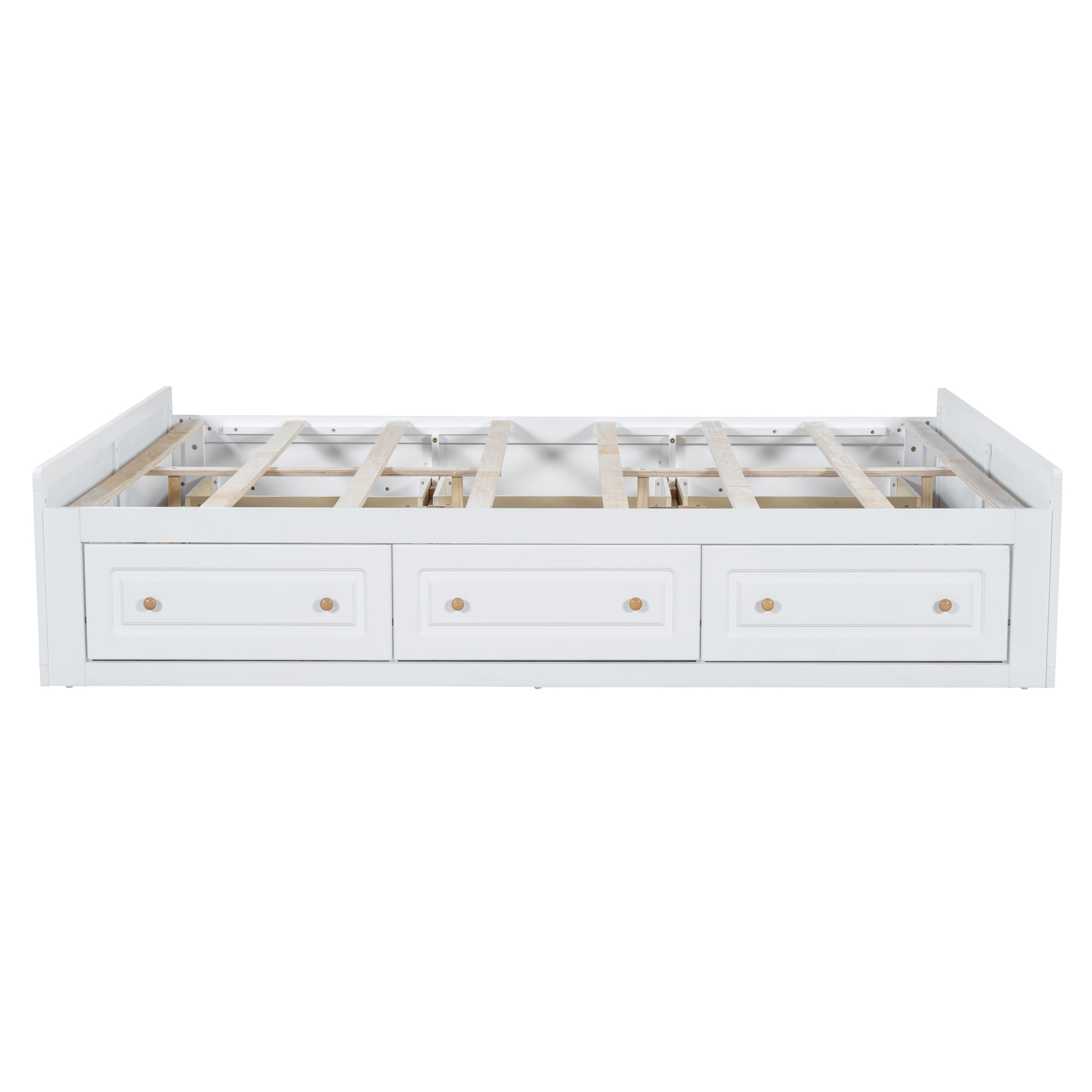 Simple, stylish, and built for everyday living — this white wood platform bed combines clean lines with smart storage to maximize space without sacrificing comfort. Crafted from pine wood and MDF, the queen-size frame offers a sturdy slatted support system and six built-in drawers, making it an ideal choice for smaller bedrooms, guest rooms, or anyone who prefers a streamlined, clutter-free look.