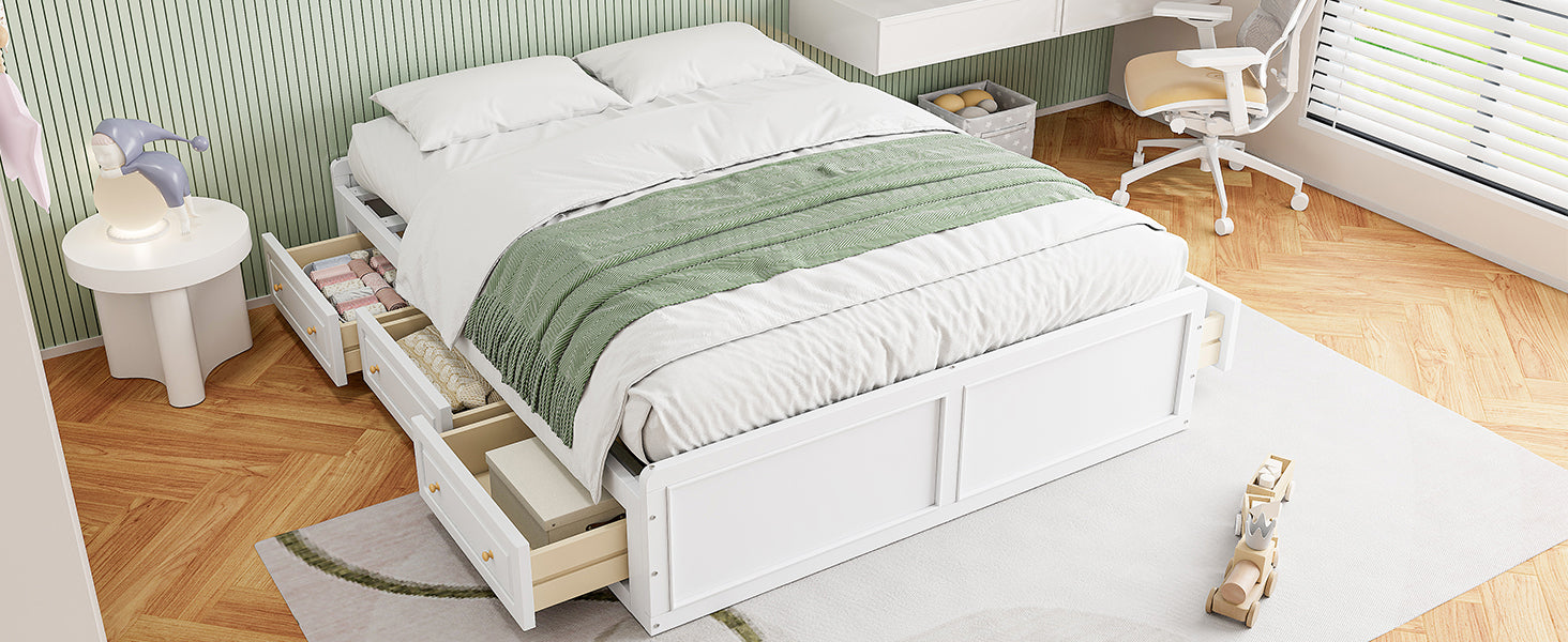- [6 Storage Drawers] There are 6 drawers underneath the bed. Your bedding, toys, daily necessities, and so on can all be properly stored.