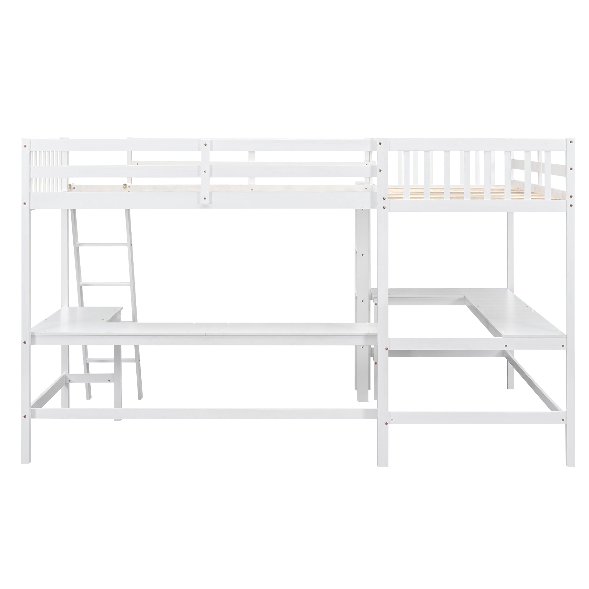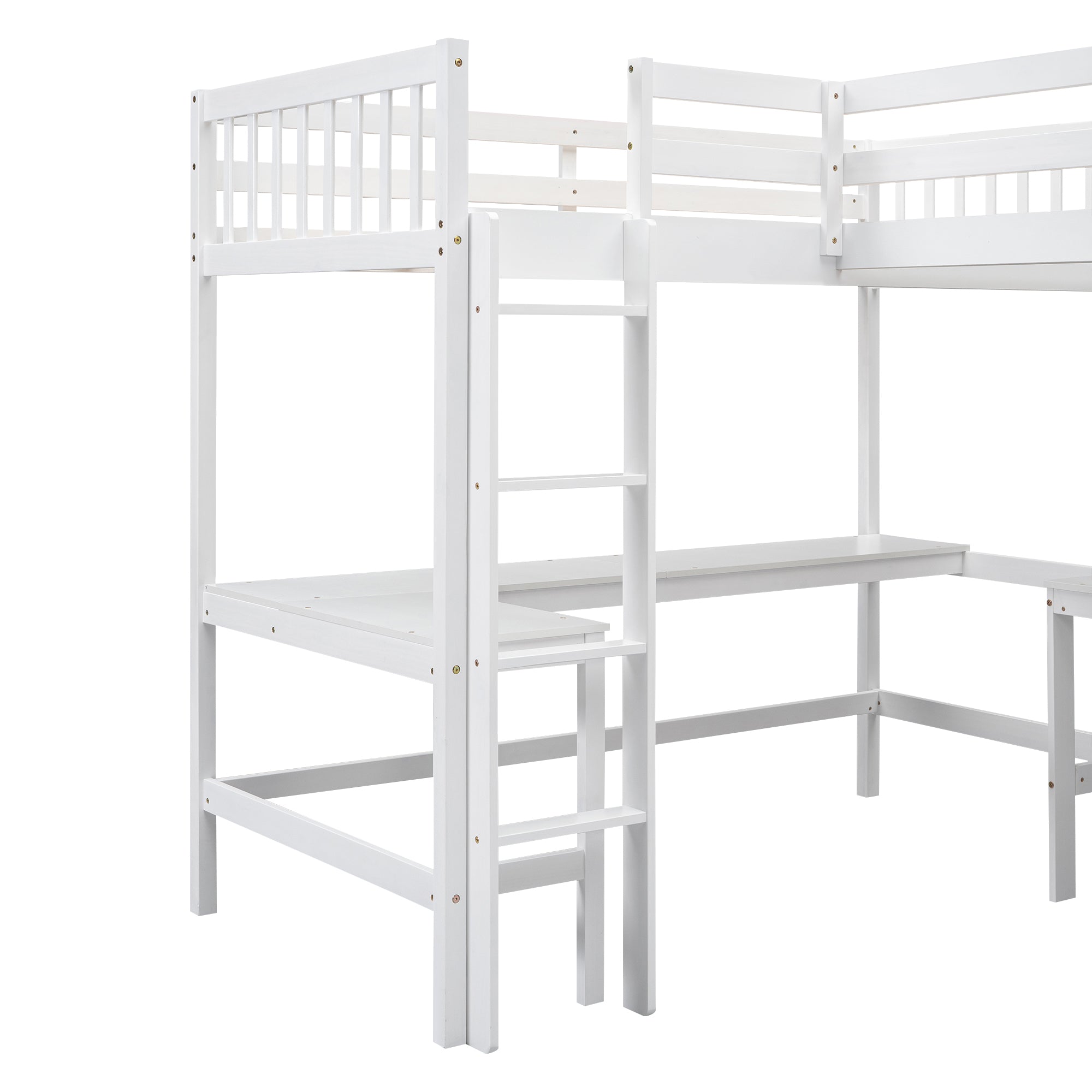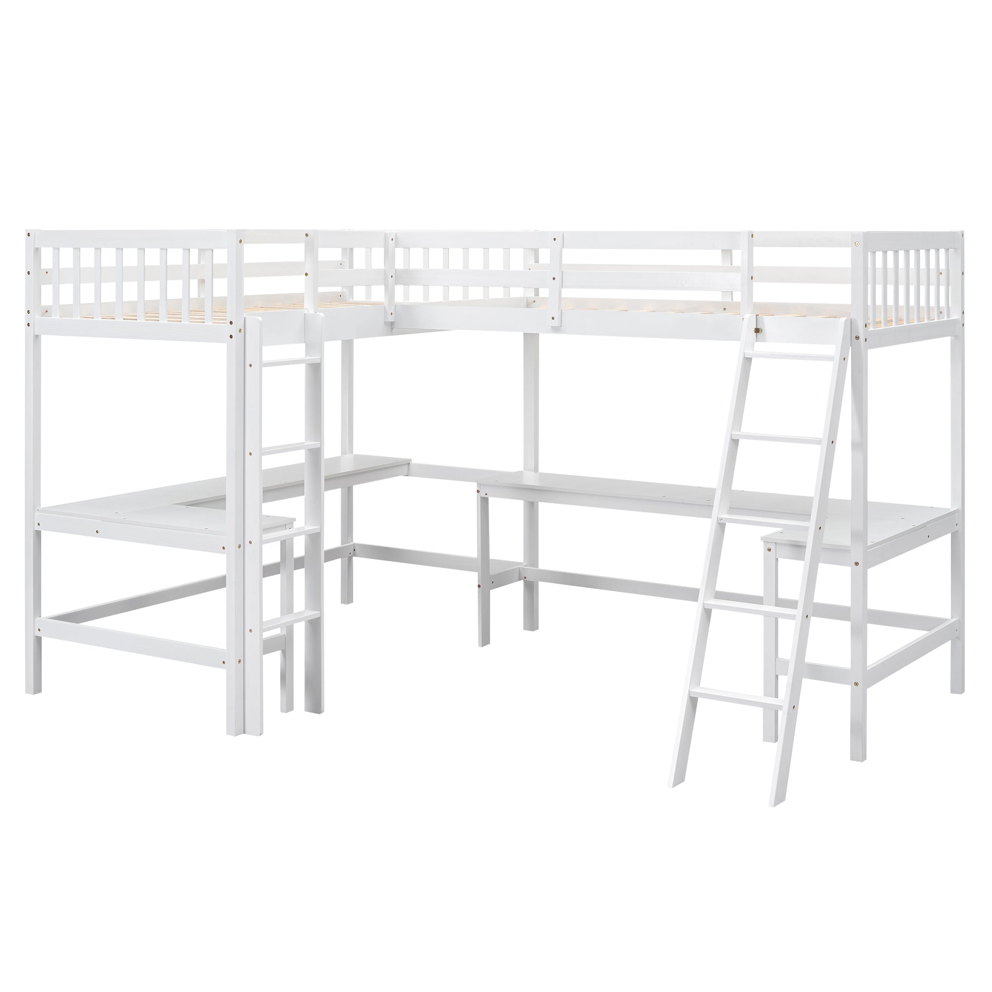Create a multi-functional sleeping and study space that maximizes floor area without compromising style. This white L-shaped twin loft bed combines a sturdy pine/MDF frame with two built-in L-shaped desks underneath, making it ideal for shared rooms, guest spaces, or a compact lake house. Clean lines and a neutral finish blend with most decor while providing a practical solution for sleep, study, and storage.