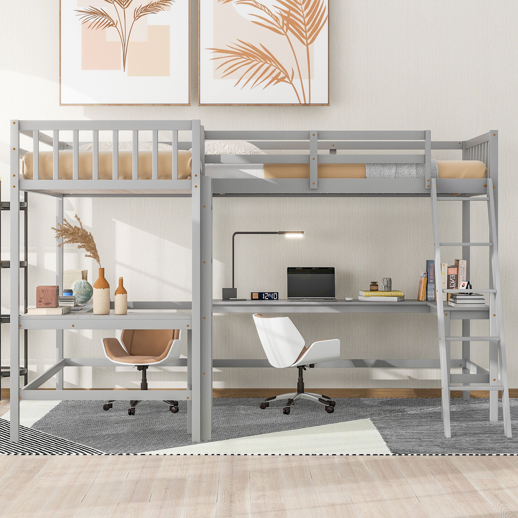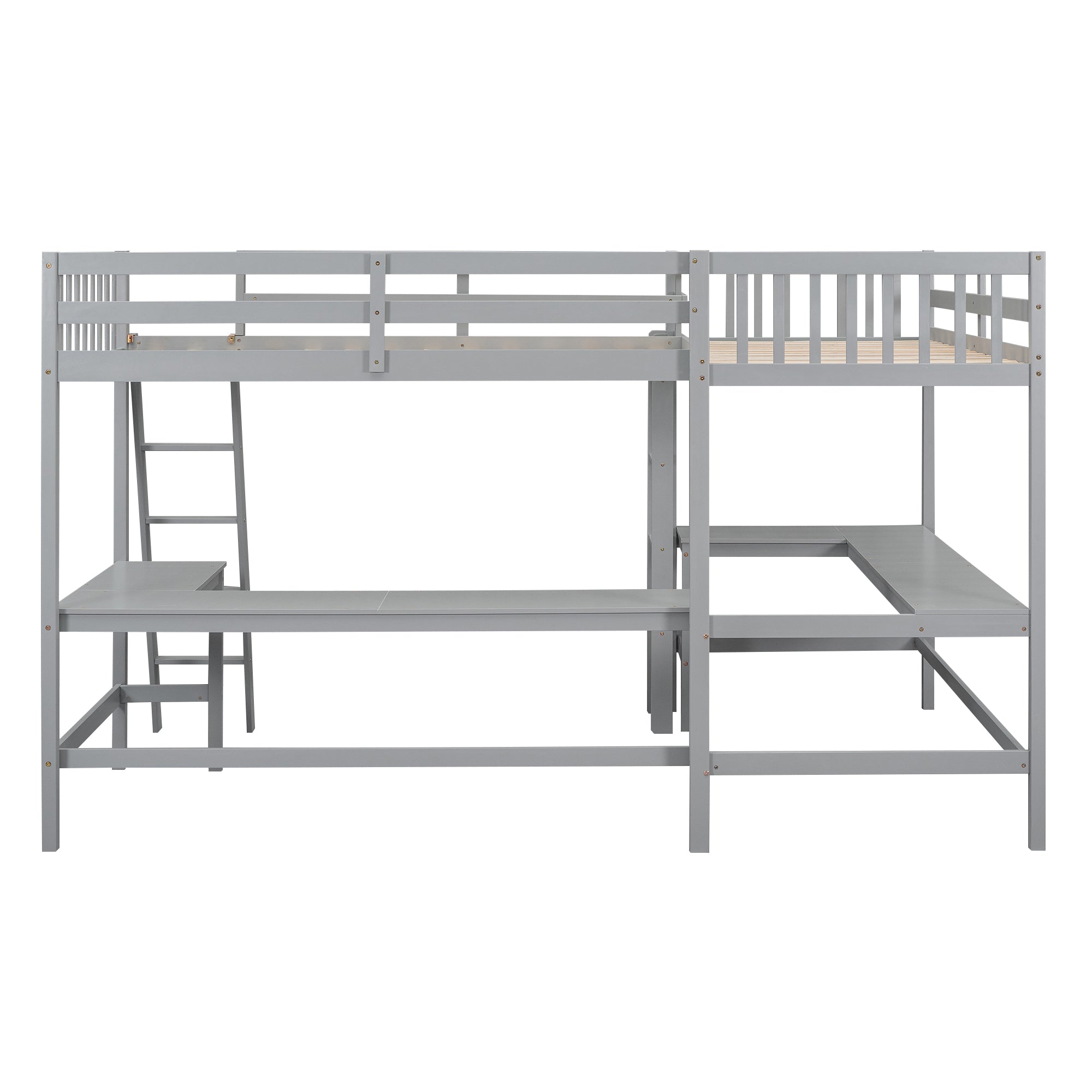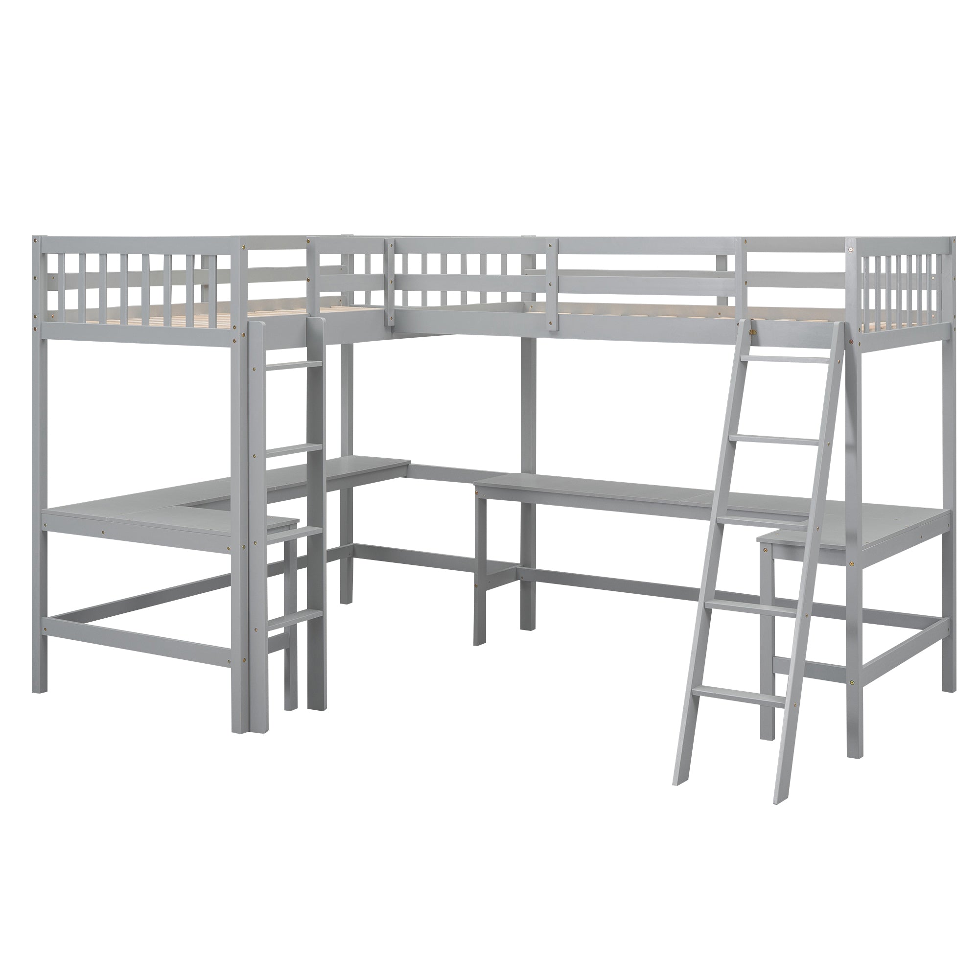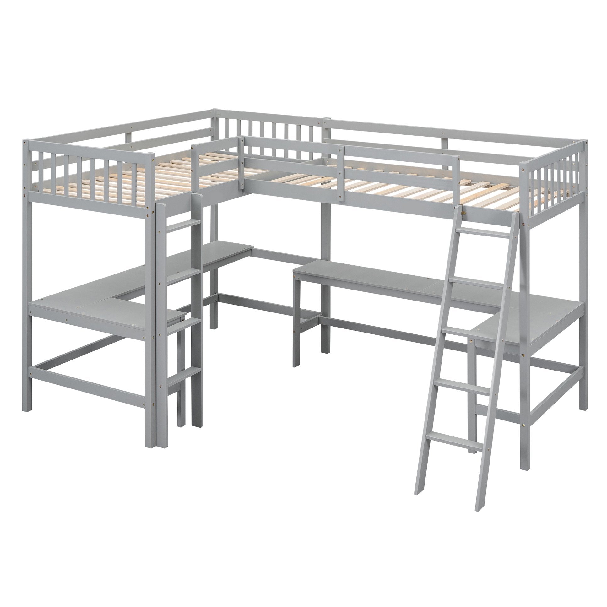 - Configuration: Twin-size L-shaped loft bed with two built-in L-shaped desks positioned beneath the loft to form an efficient study or gaming area.