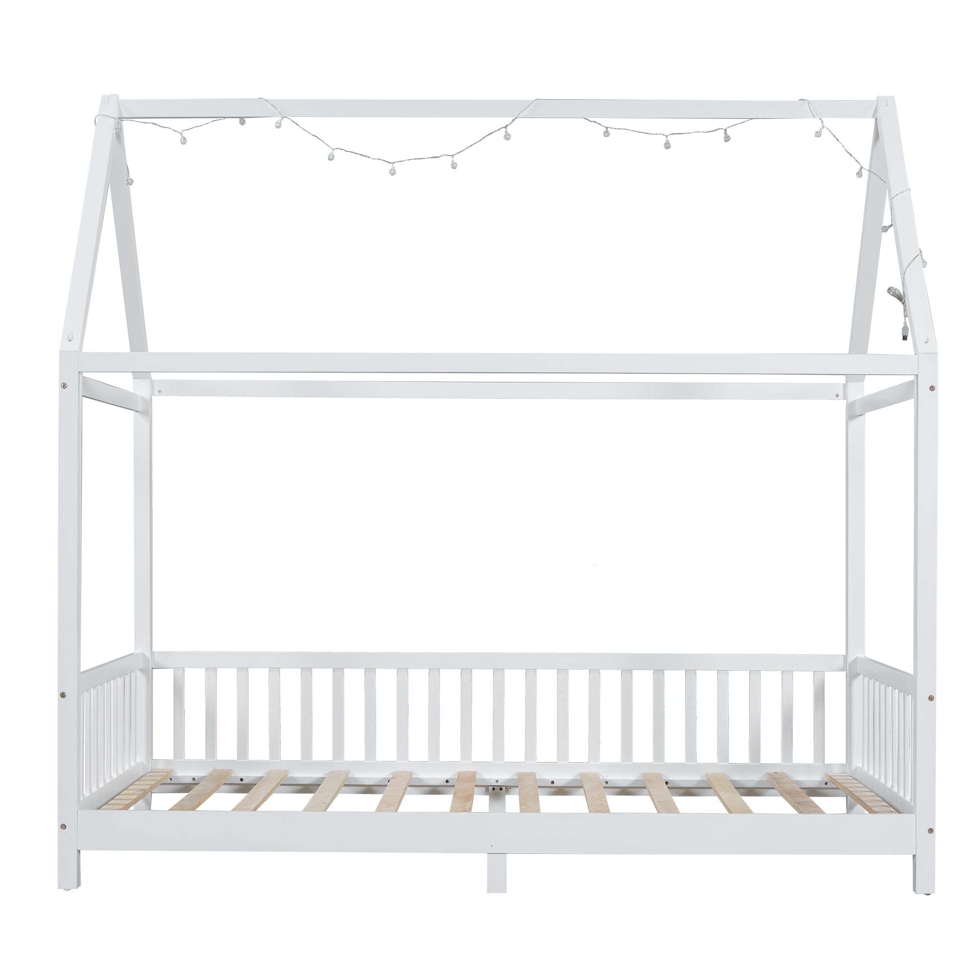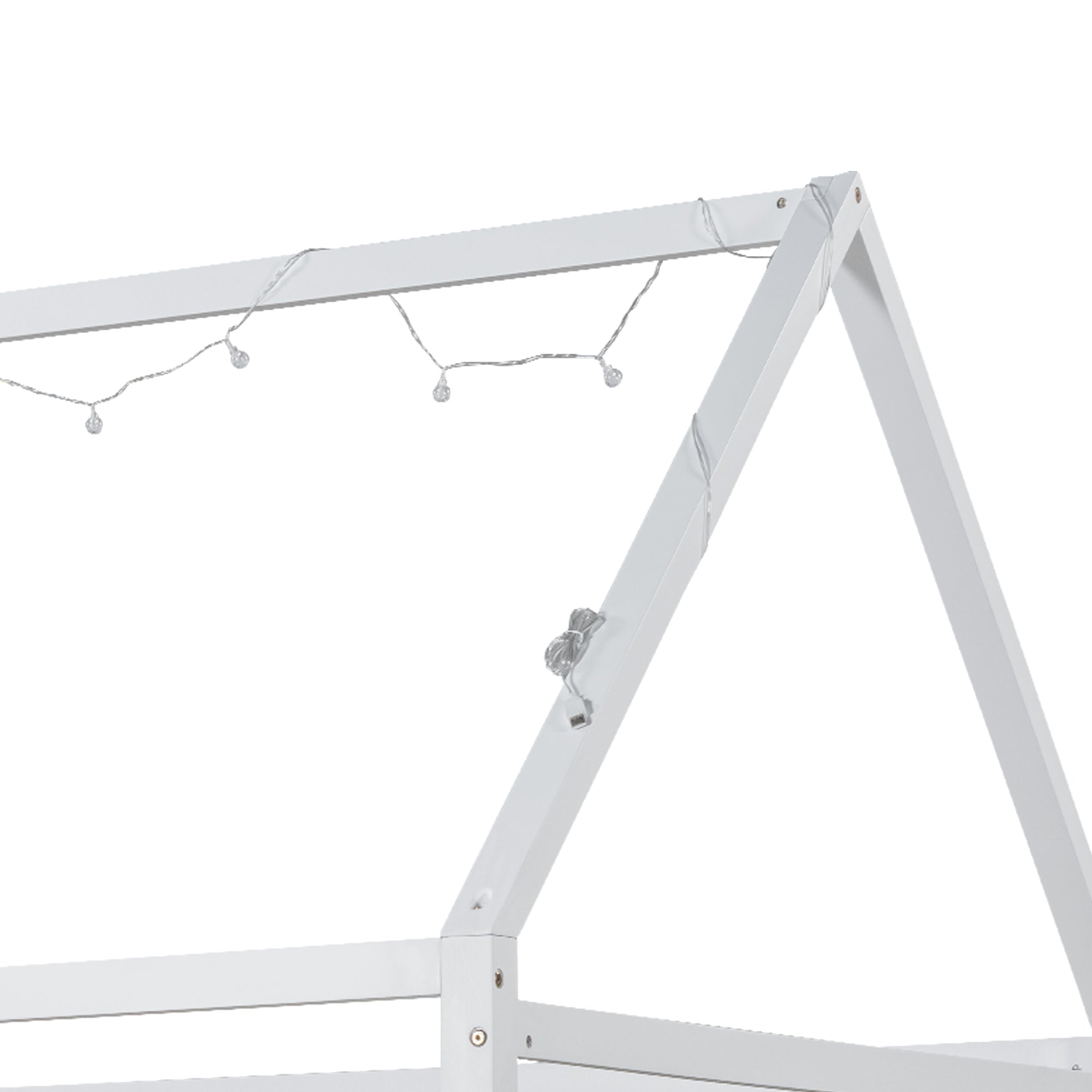Give your child a cozy, imaginative sleep space with this charming house-style twin bed. Clean white lines and a sturdy pine frame create a timeless look that works for any bedroom theme, while the included guardrail and built-in LED lighting add safety and nighttime comfort. Designed for easy assembly and everyday use, this bed supports playtime, reading, and restful sleep in equal measure.