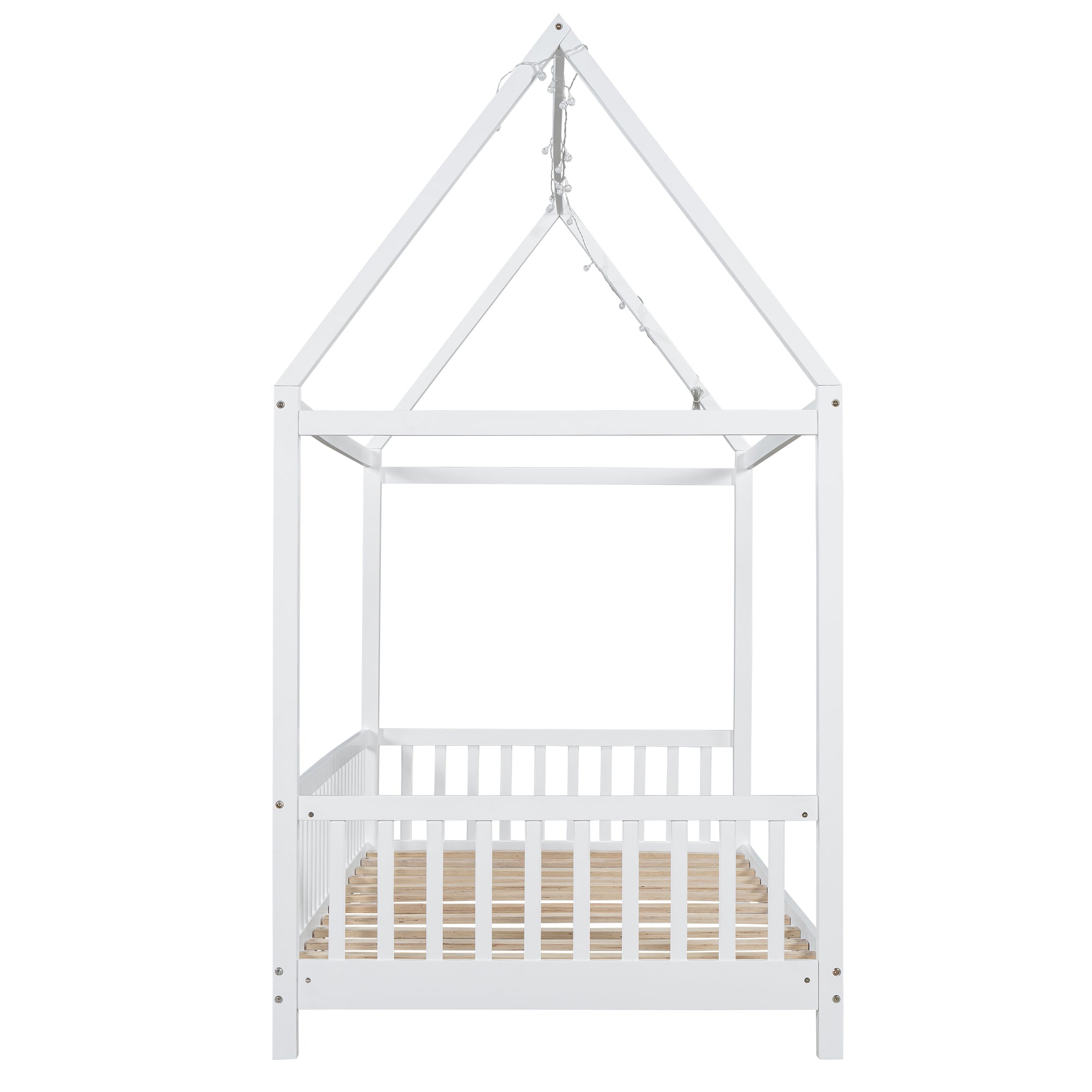 - [House-Shaped Bed] The house bed featuring a classic house-shaped, this imaginative bed is equipped with a whimsical sky roof and uniquely shaped guardrail for a fun bedroom environment that your child will love.