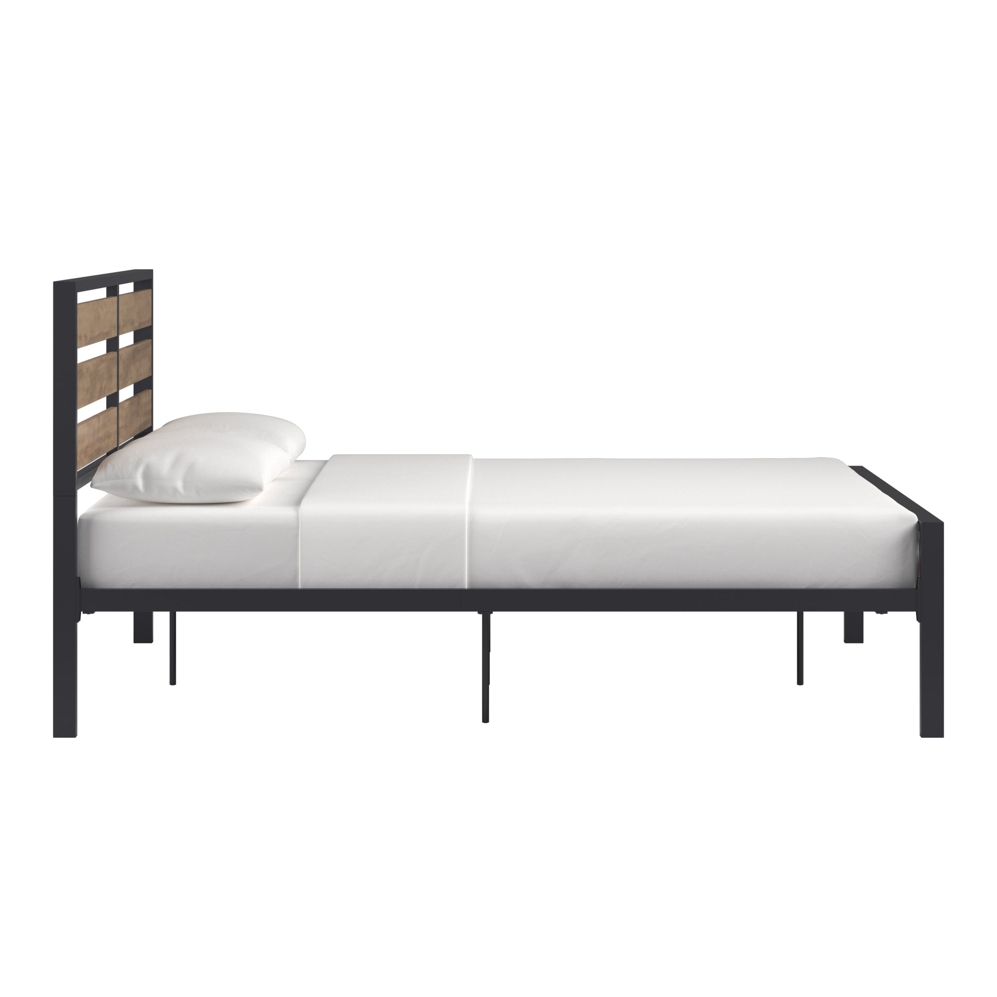 - Clean-lined silhouette with understated side rails, headboard, and footboard