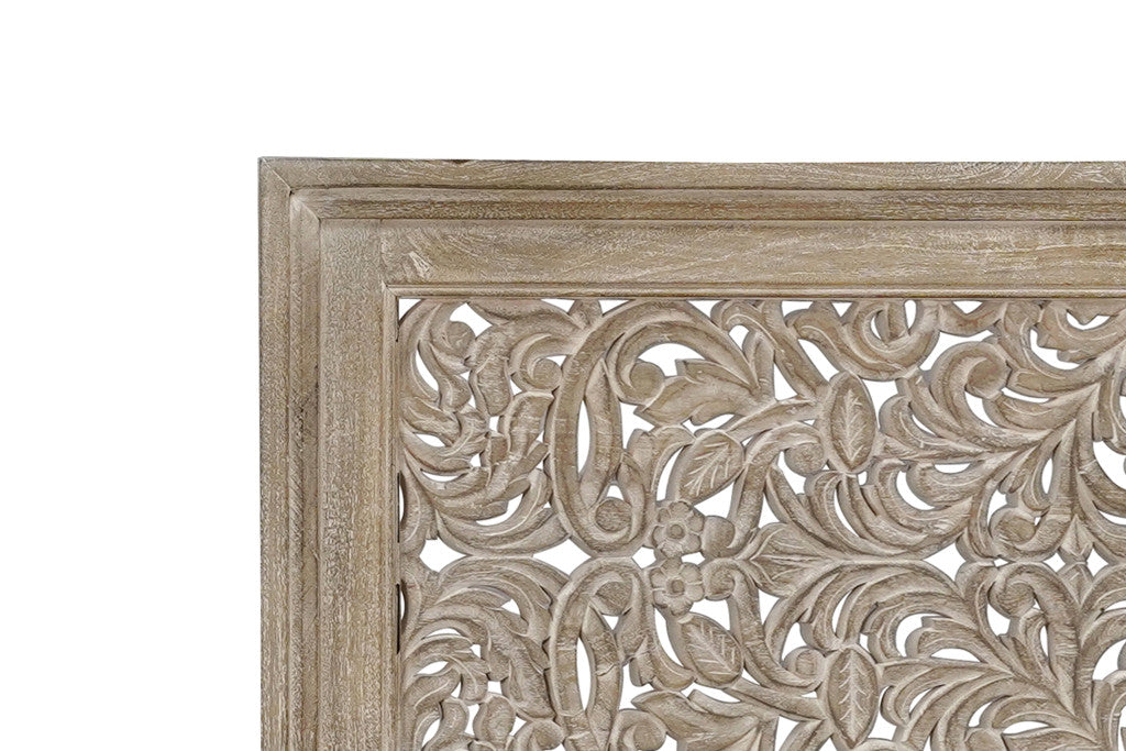 - The finish of the wood is purposefully whitewashed, weathered, and distressed for a rustic / vintage style.