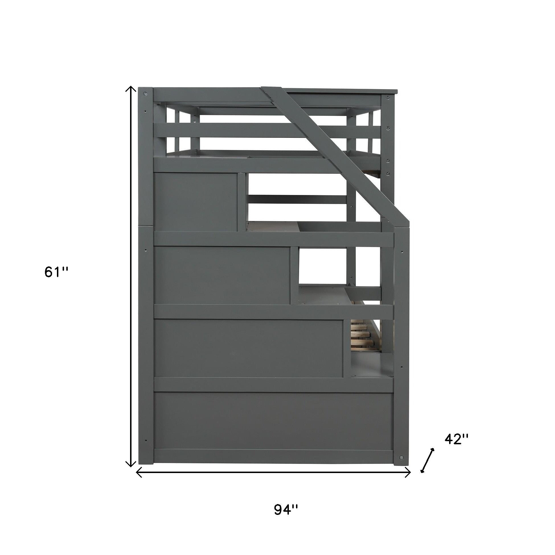 - This twin bunk bed provides an extra trundle option and three spacious storage stairs.