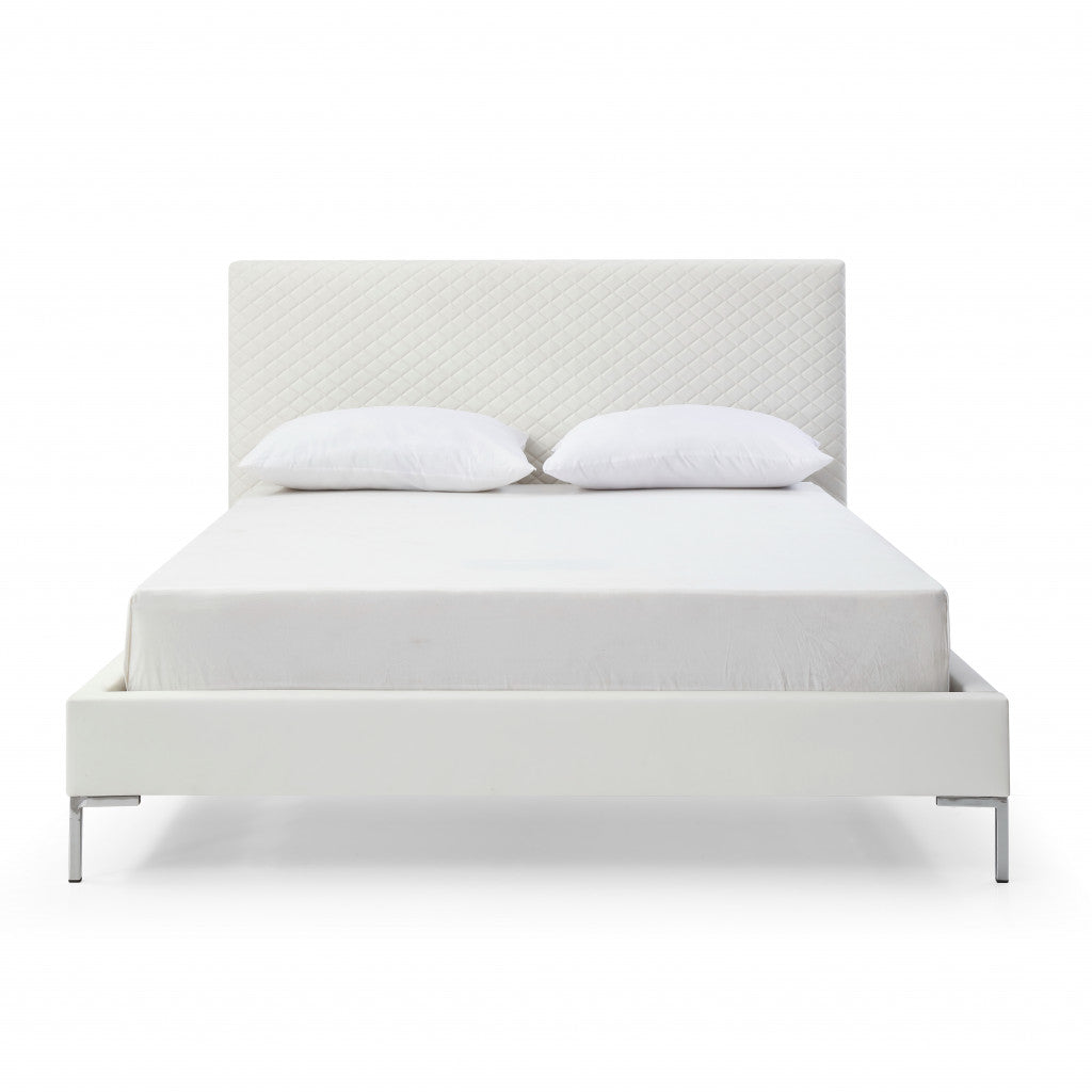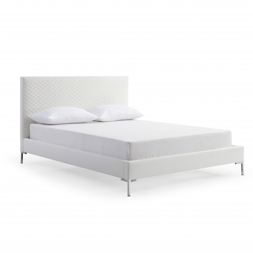 - Fully upholstered in soft and durable faux leather with a cross stitch diamond design headboard.