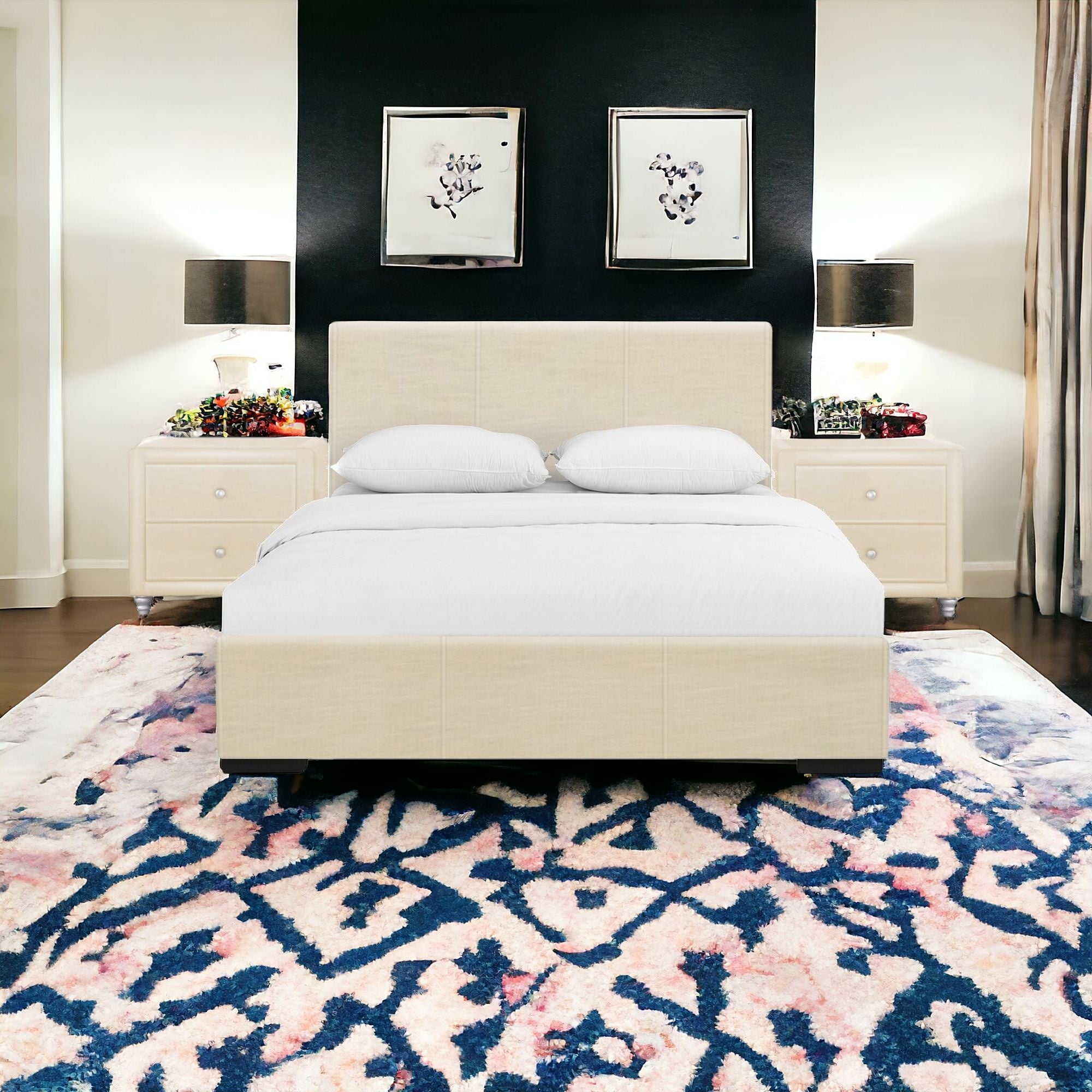 - Upholstered in soft and durable linen. Moth resistant and wrinkle prone.