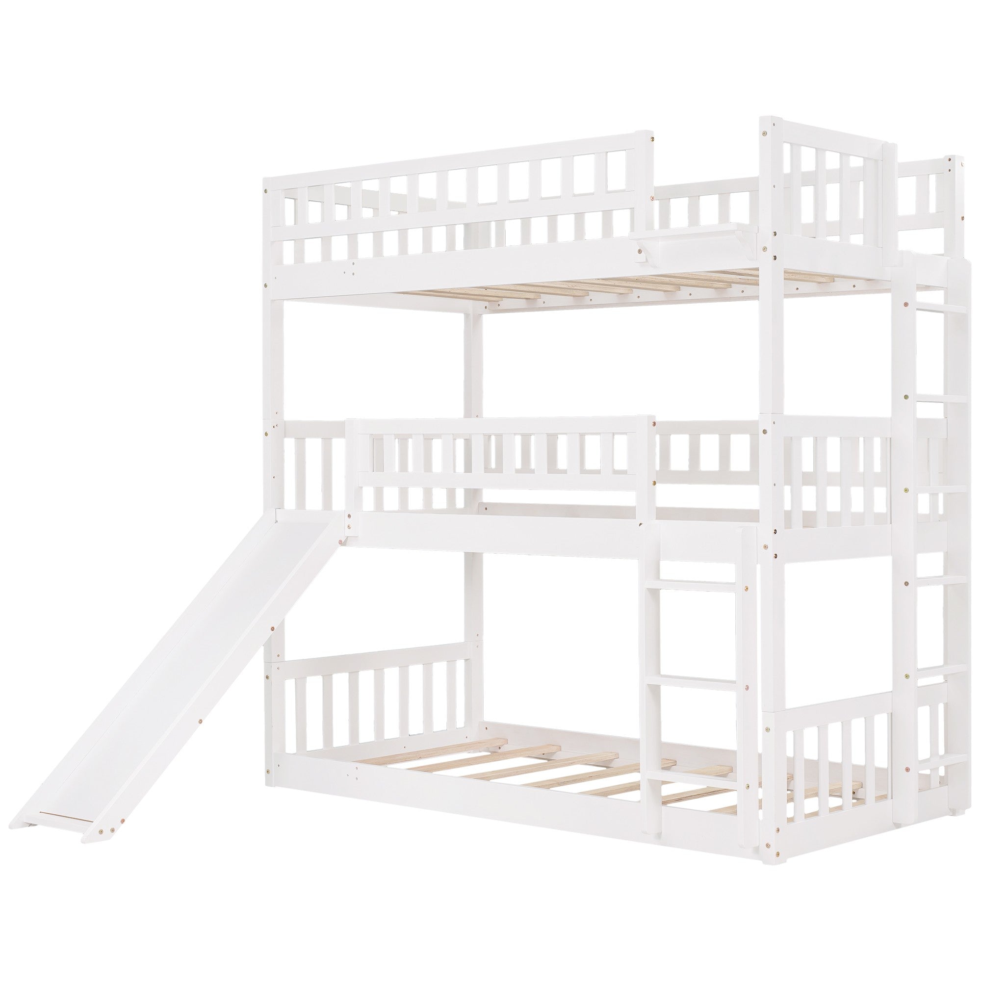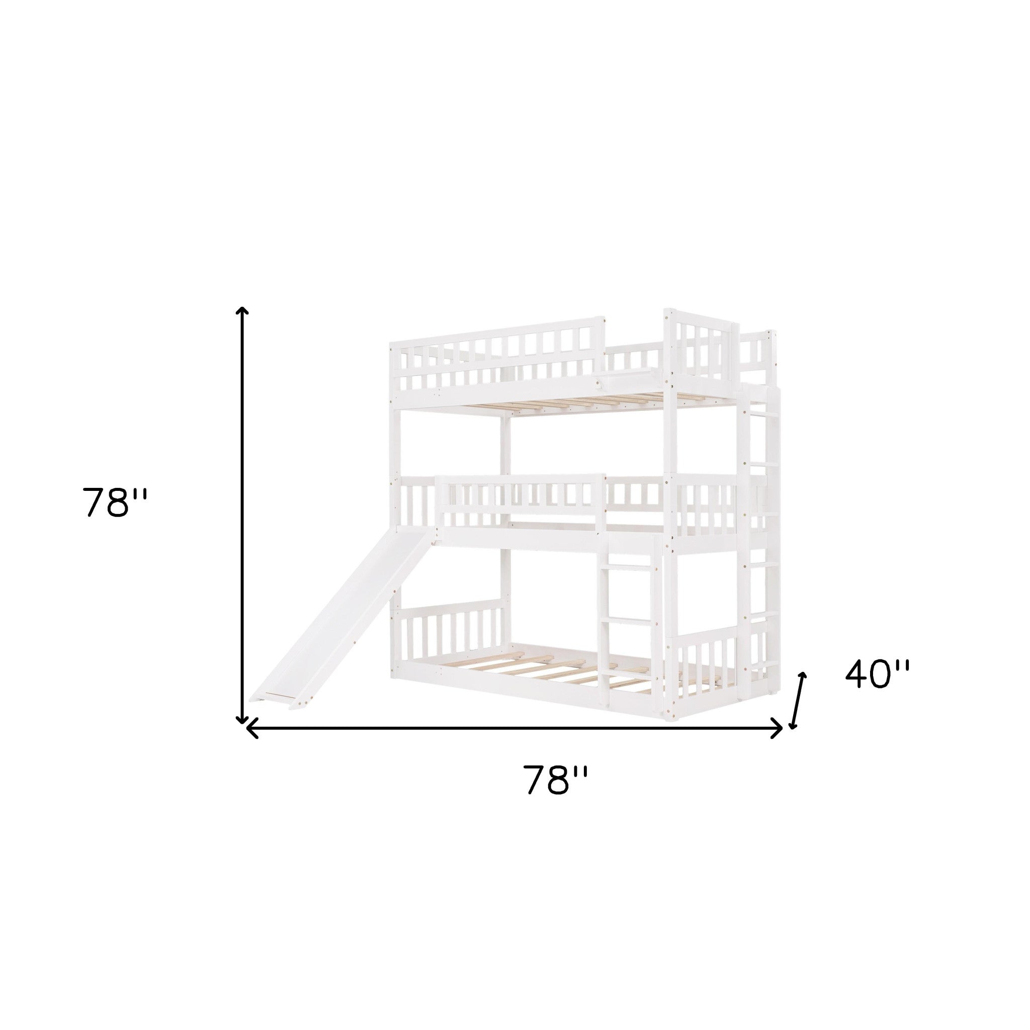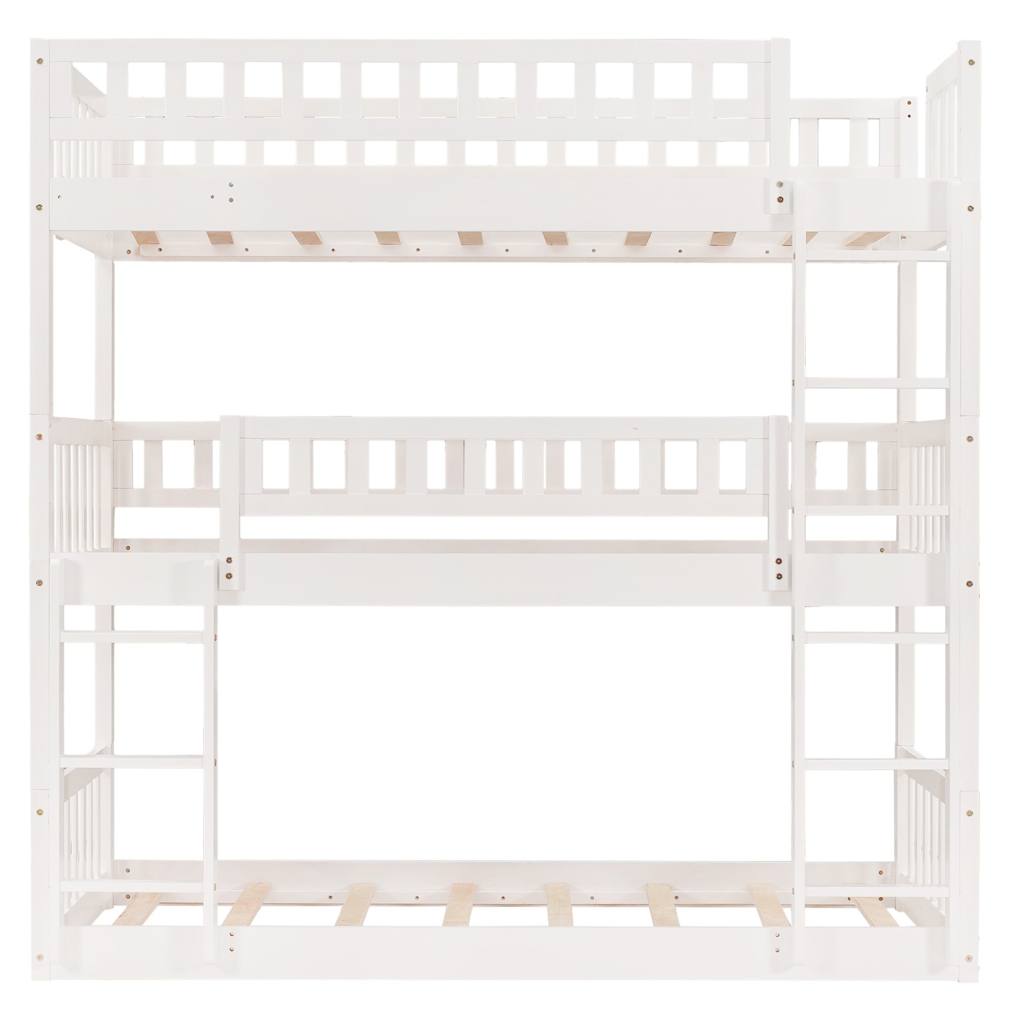 - Maximized Space: Take advantage of vertical space, this twin-over-twin-over-twin bed can save plenty of room for you to place other furniture in kids' bedroom. Combined with three twin beds, this triple bed is perfect for multi-child family