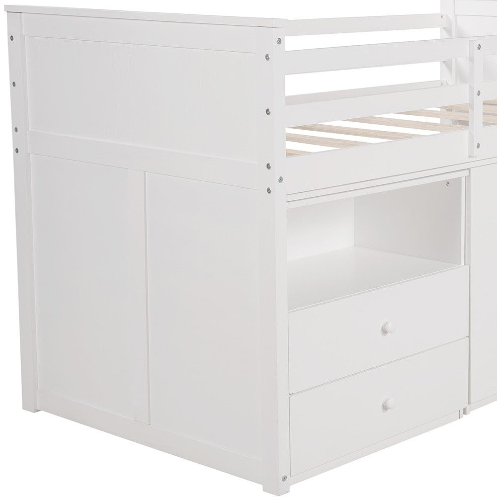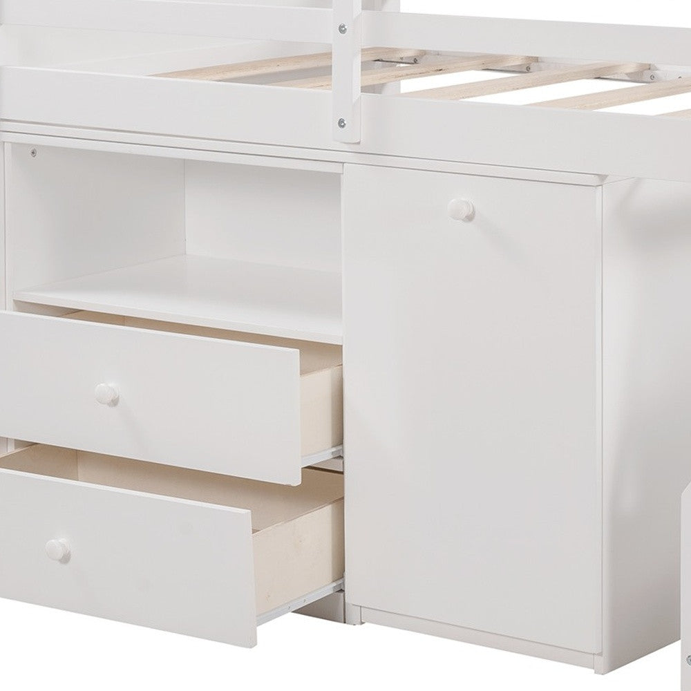 - With a three-step set of stairs, this loft Bed provides easy and safe access for getting in and out of the top loft. Also, given the width of the stairs they also double as very functional storage when compared with traditional laddered lofts