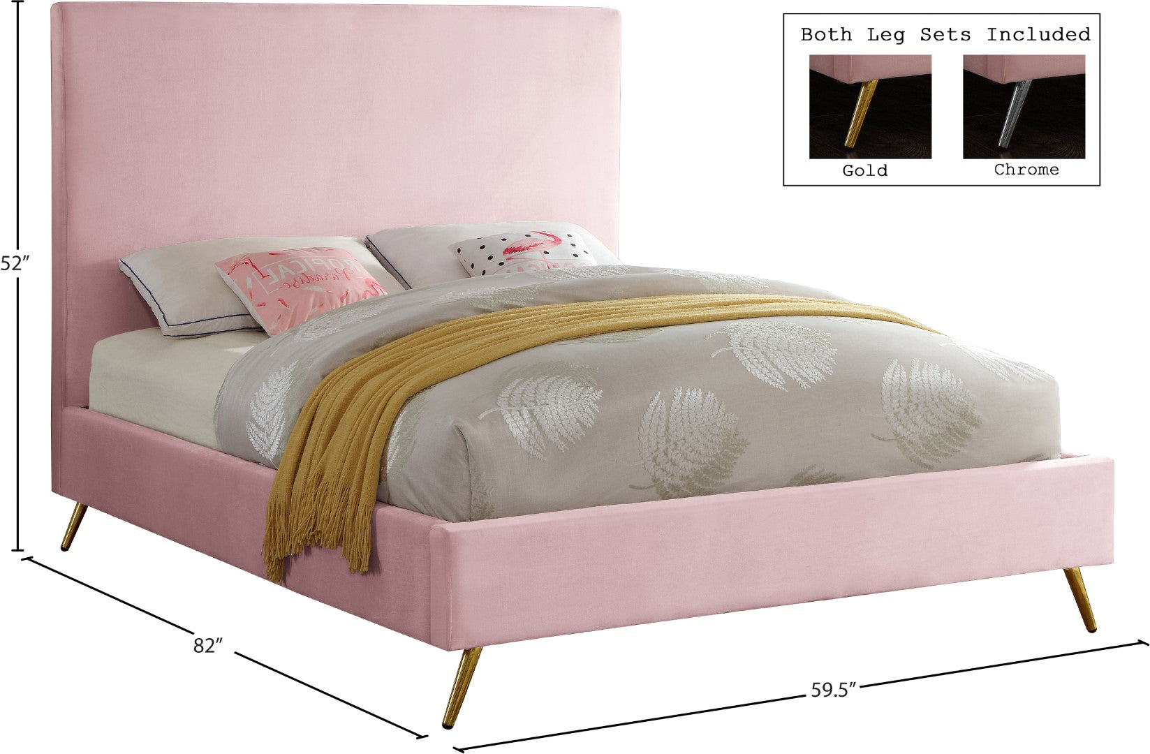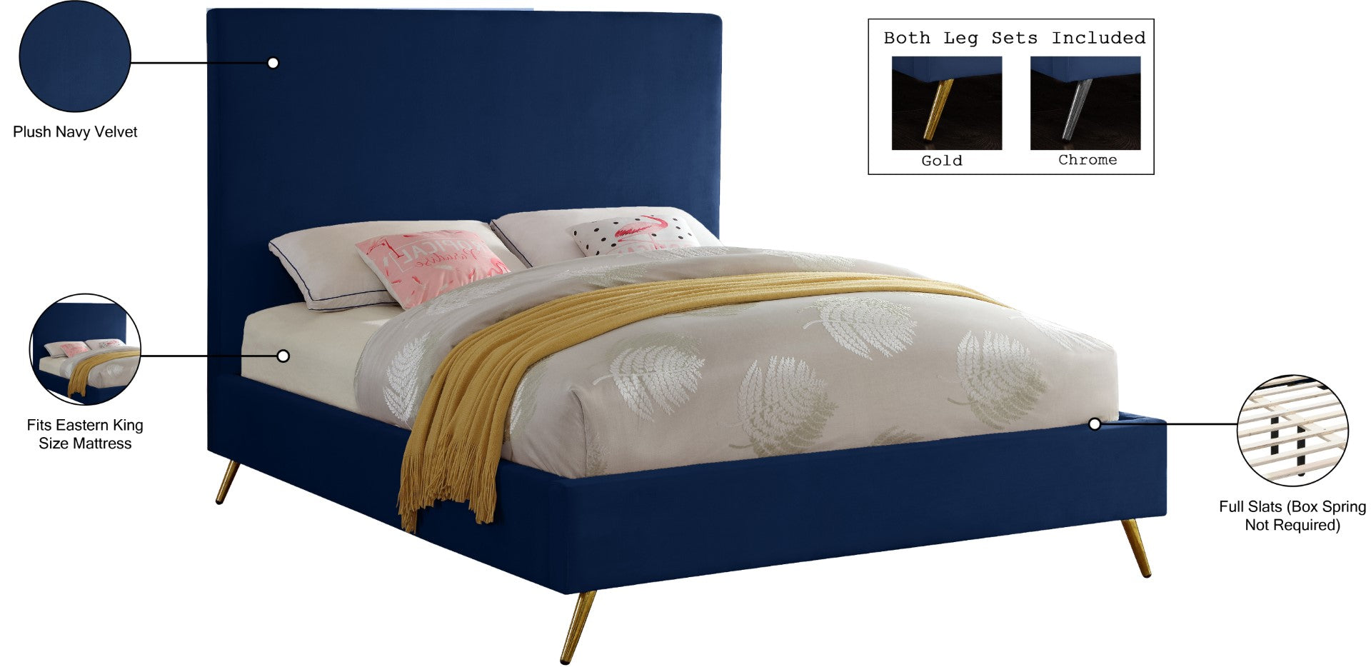 - Feature 2: Gold and Chrome Legs Included with each bed