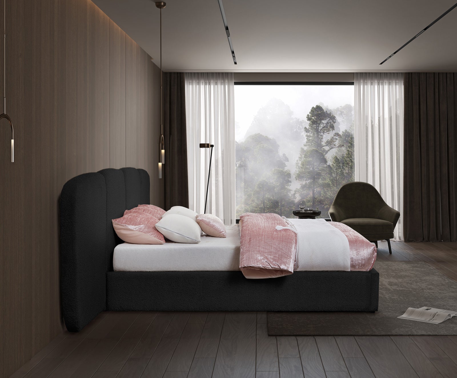 - Material: ShilohBlack-K Shiloh Black Boucle Fabric King Bed - Boucle Fabric / Engineered Wood / Foam