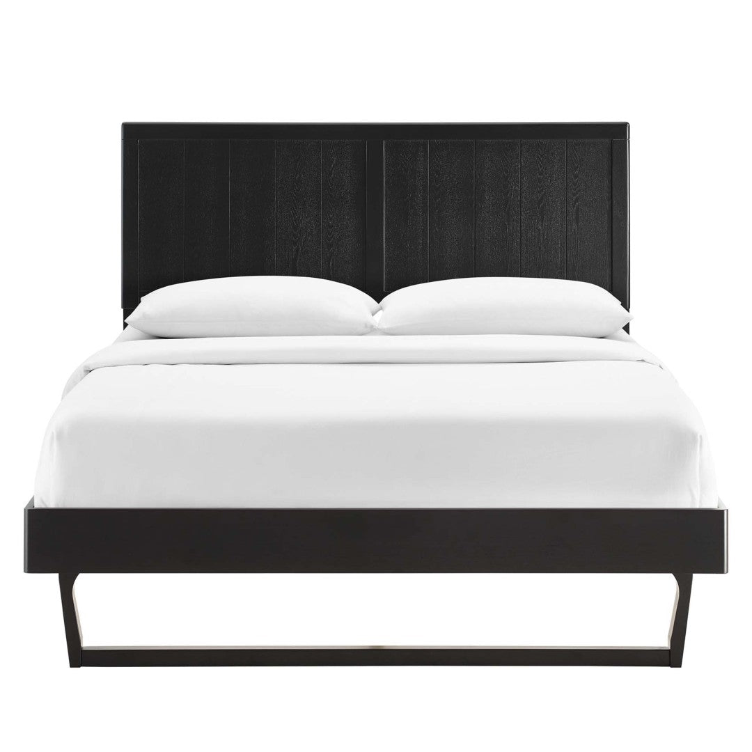 - Design Details: Full headboard with vertical wood paneling and contemporary angular frame for a modern mid-century aesthetic.