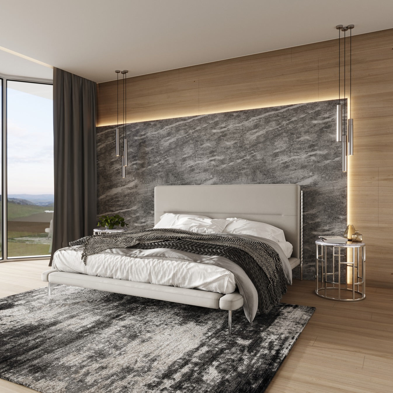 Dimensions: Queen: W67" x D88" x H46": King: W82" x D88" x H46": Leg Height: 8.5": Footboard Height: 13.5"