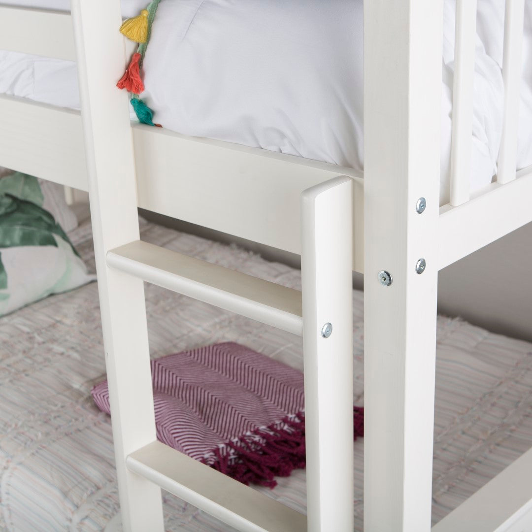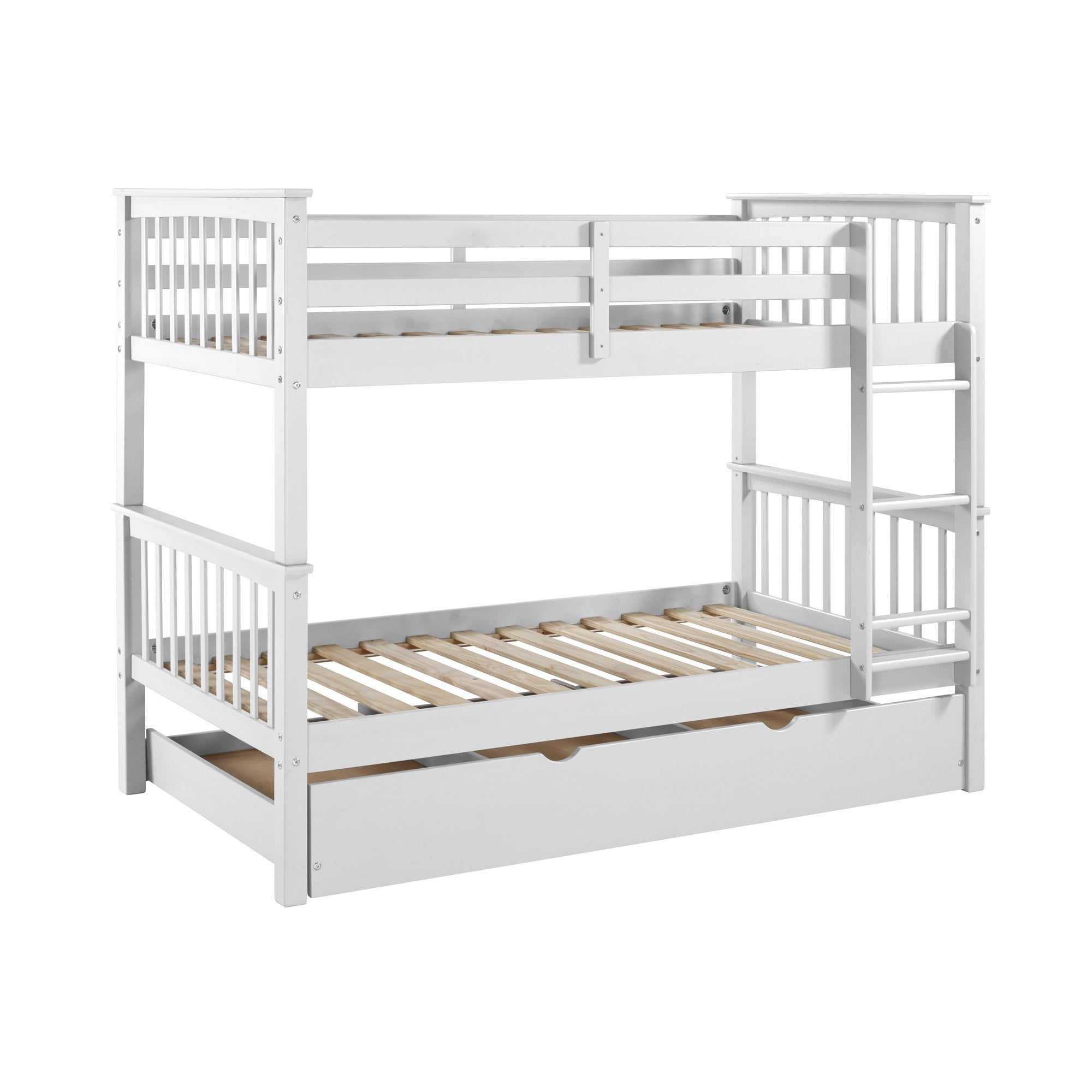 Save space while giving your children’s bedroom an extra bonus of fun with this solid wood twin bunk bed. Finished in a trendy and clean color, it’s sure to fit any room in your home. Featuring safety guardrails and an integrated ladder that is reliably constructed. Unlike other beds, it easily and safely converts into two twin beds for your convenience when the kids are old enough to need a little more space.